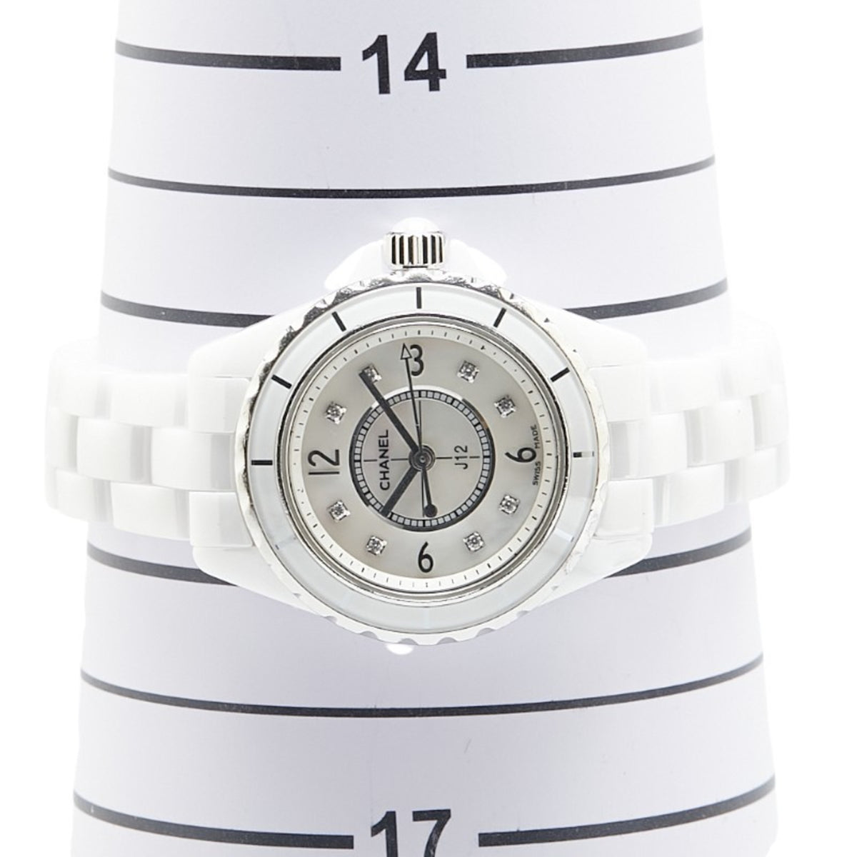 Pre-Owned CHANEL J12 8P Diamond Watch H2570 Quartz Silver Dial White Ceramic Women's