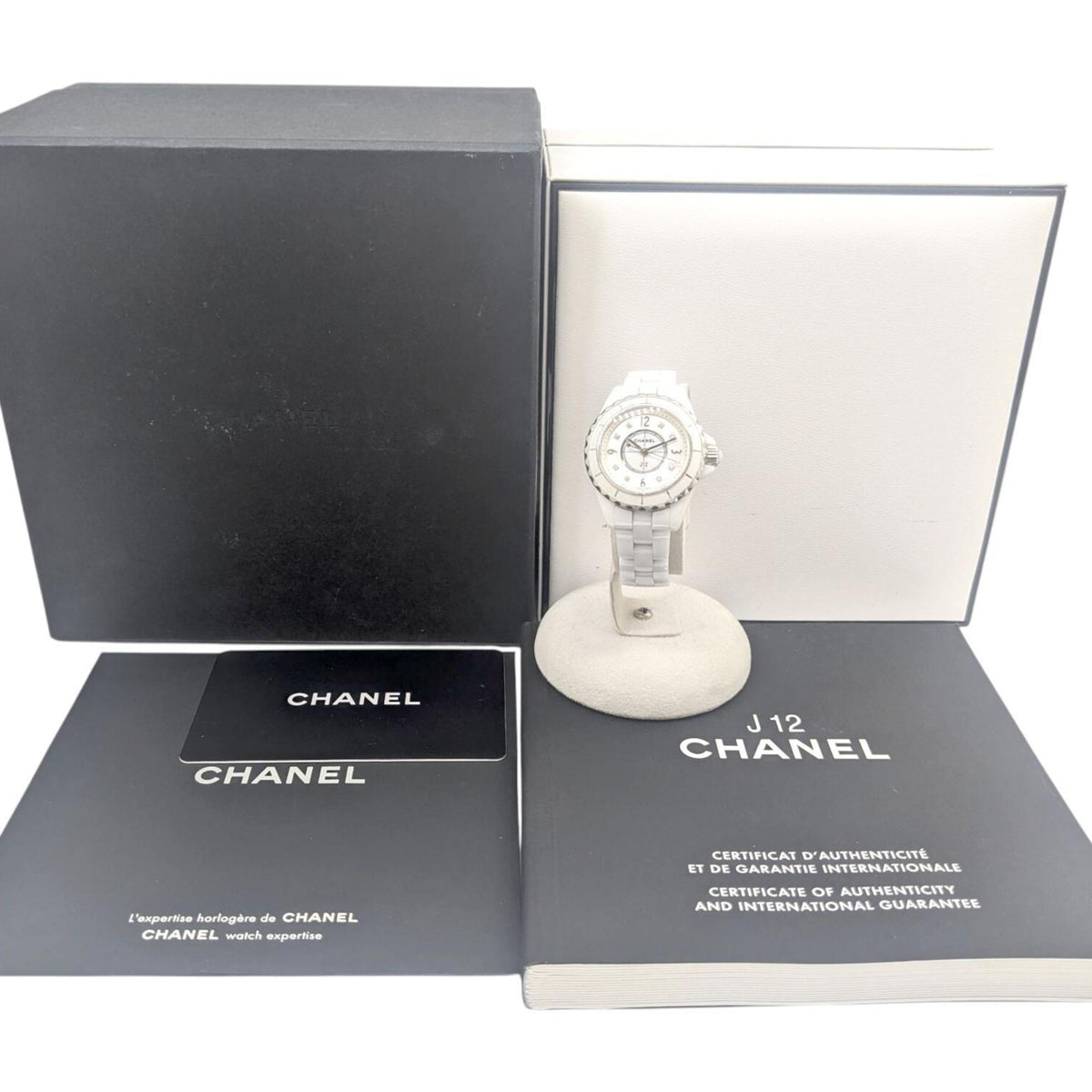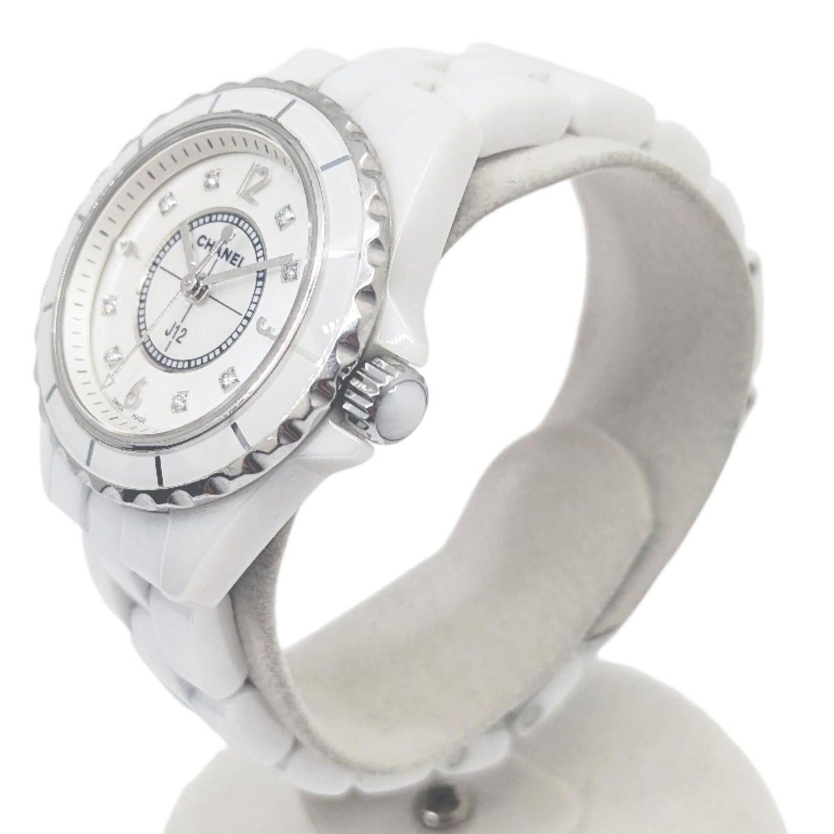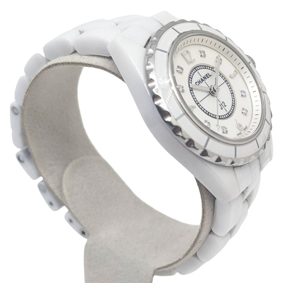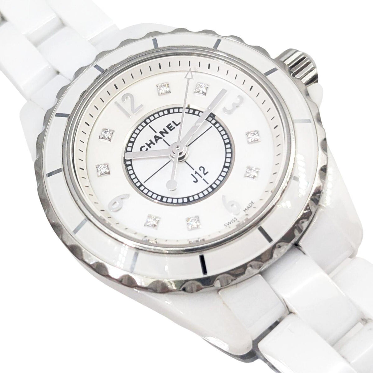 Pre-Owned CHANEL J12 White Ceramic Shell Dial with 8 Diamonds, 29mm, H2570, Quartz Movement, Women's Watch, Battery-Powered