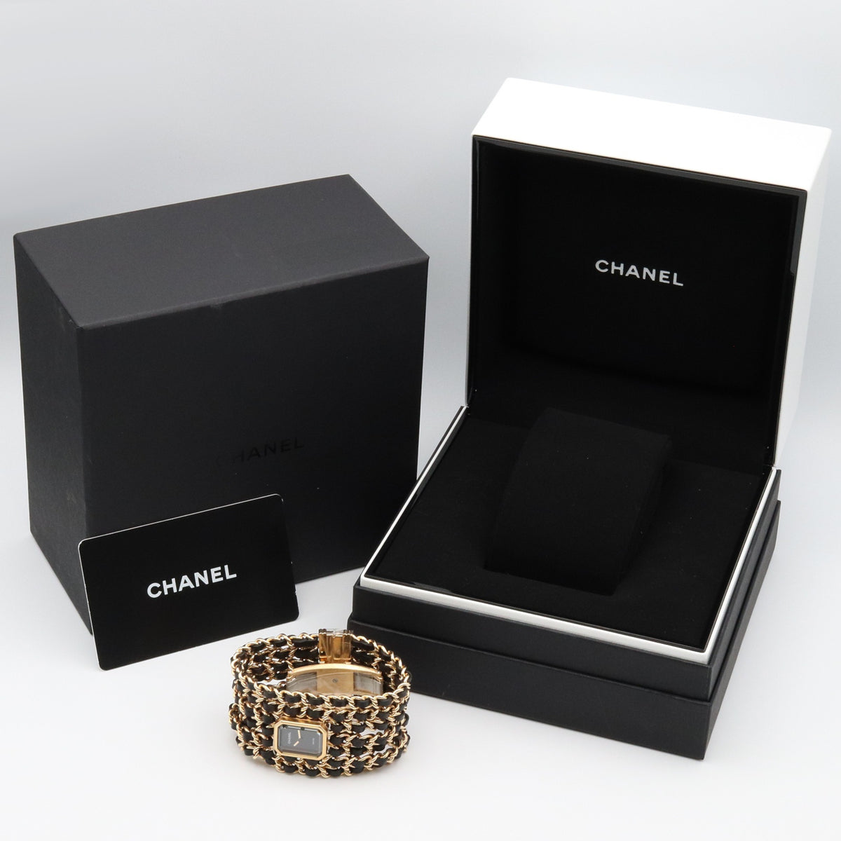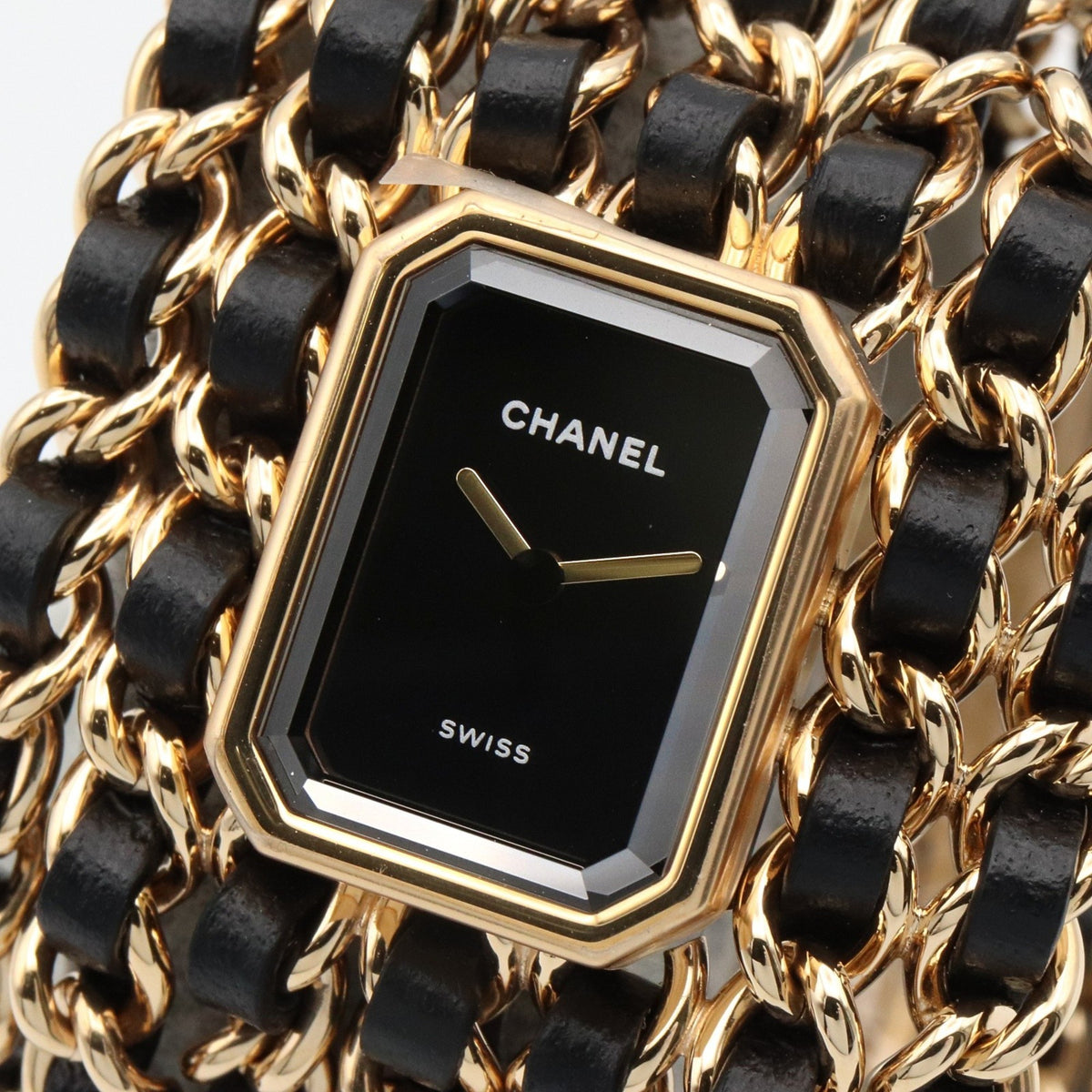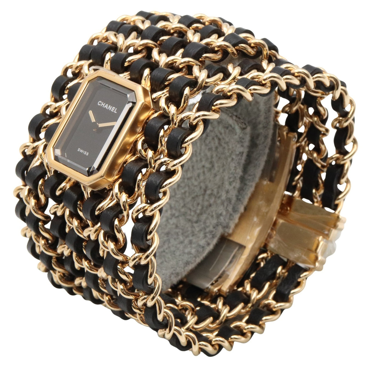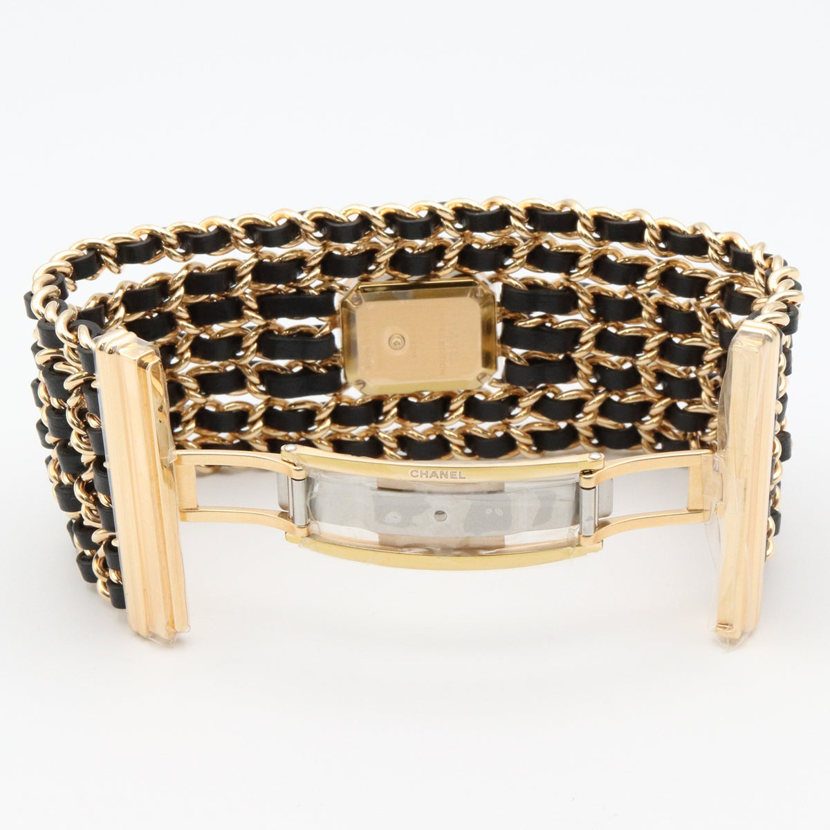 Pre-Owned CHANEL Premiere Cuff Watch, GP (Gold Plated), Leather, Women's, Black, H9861
