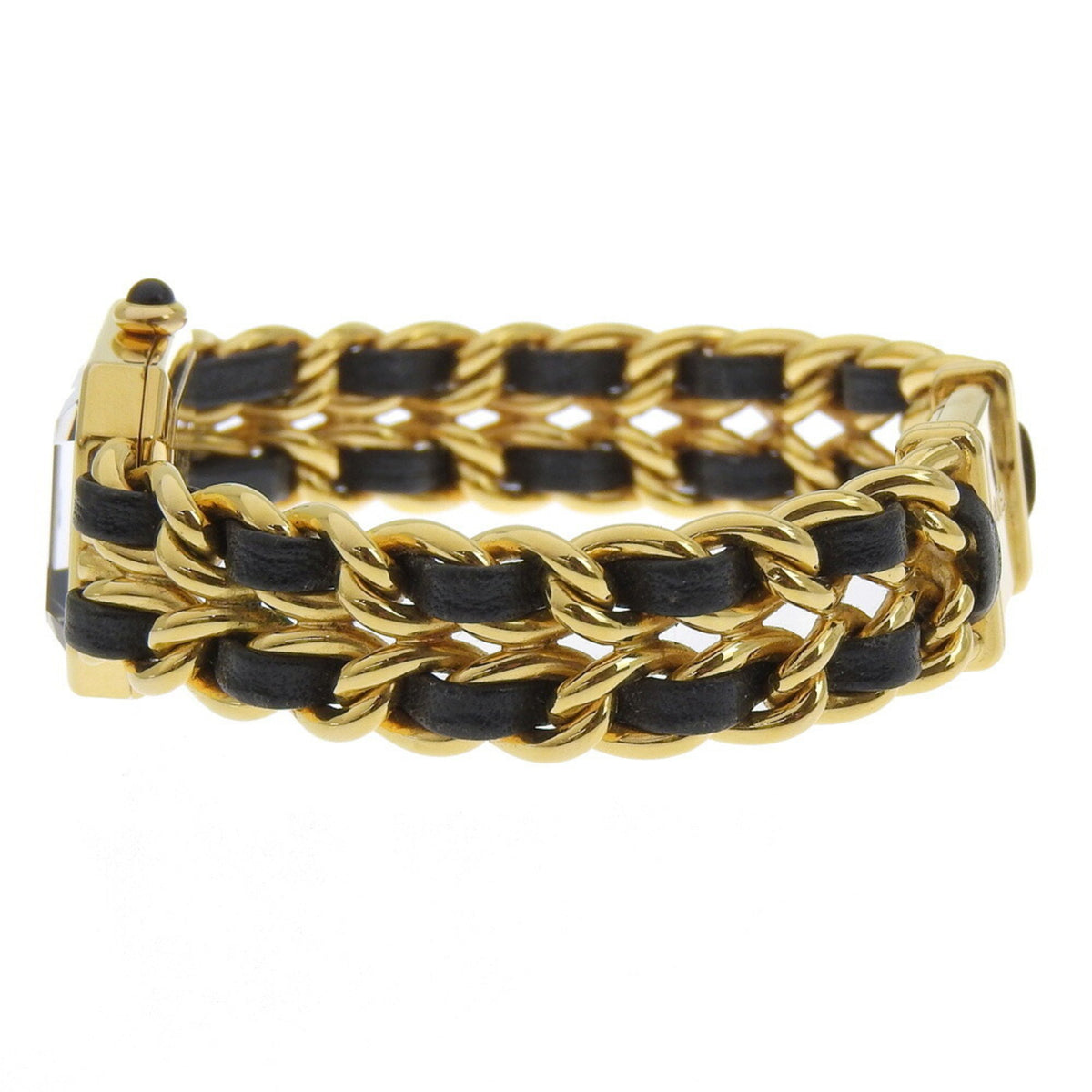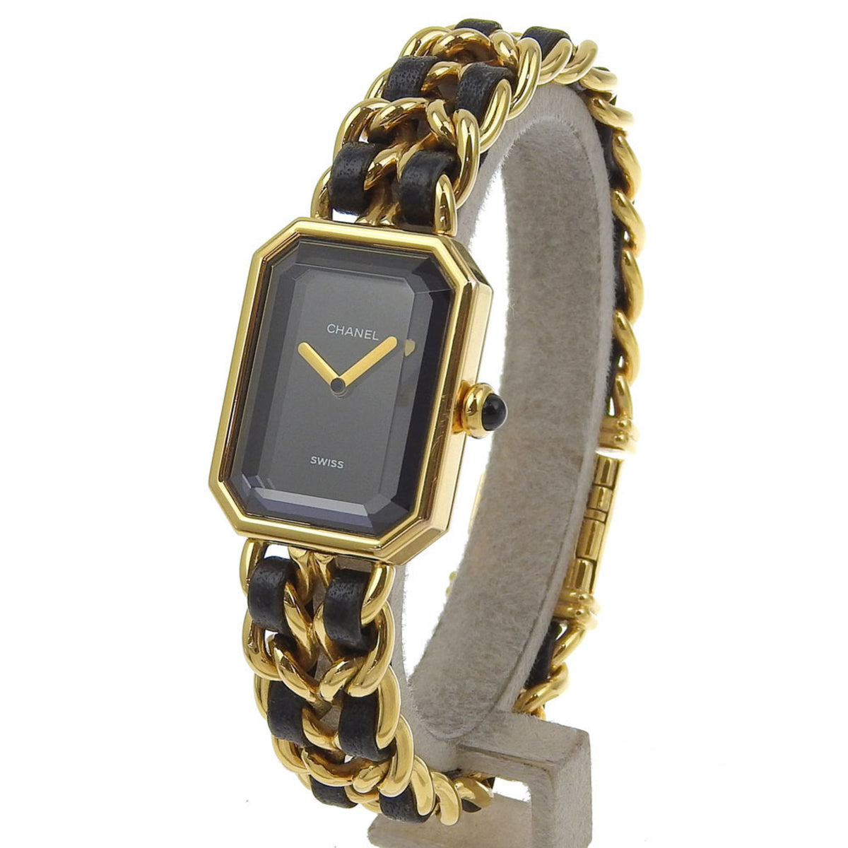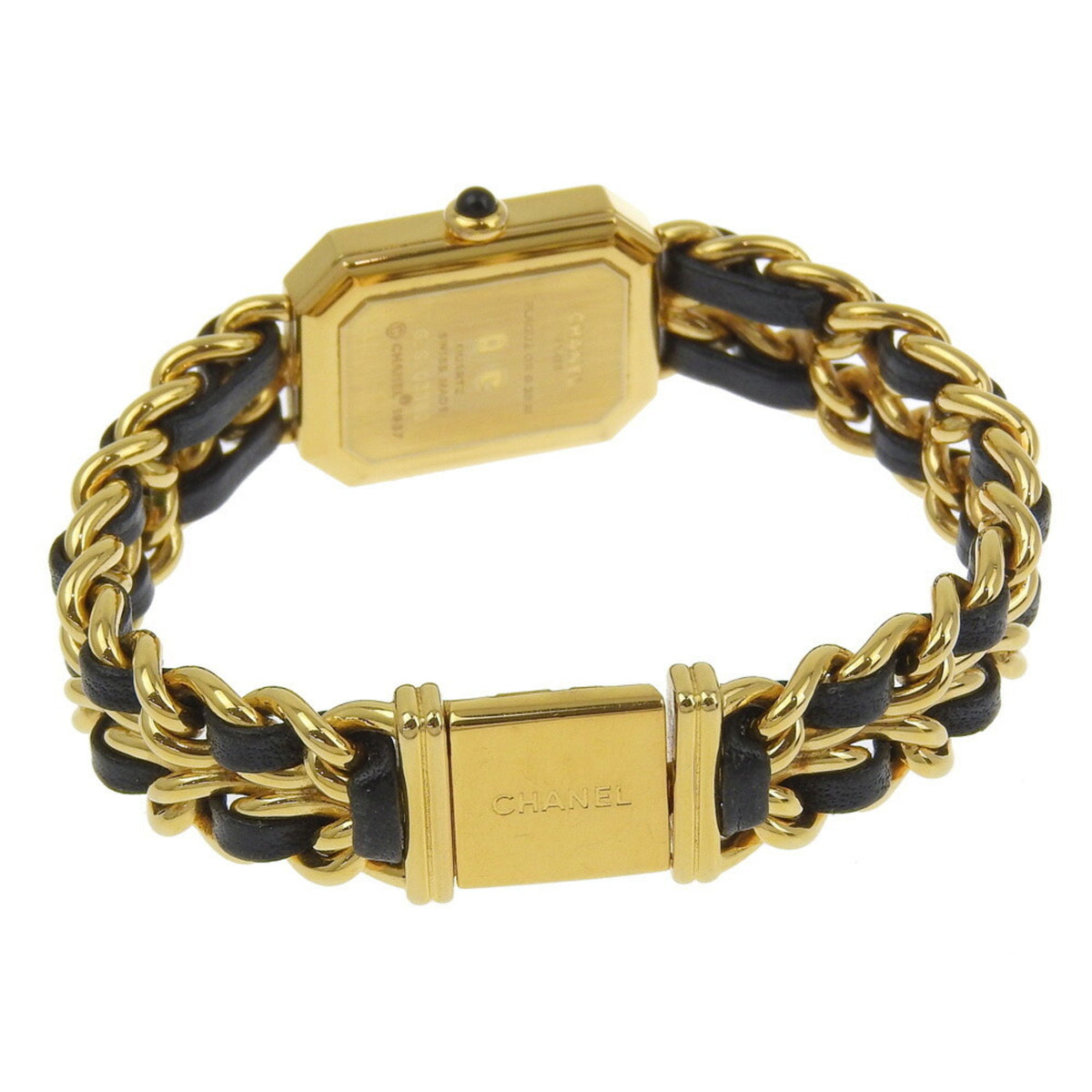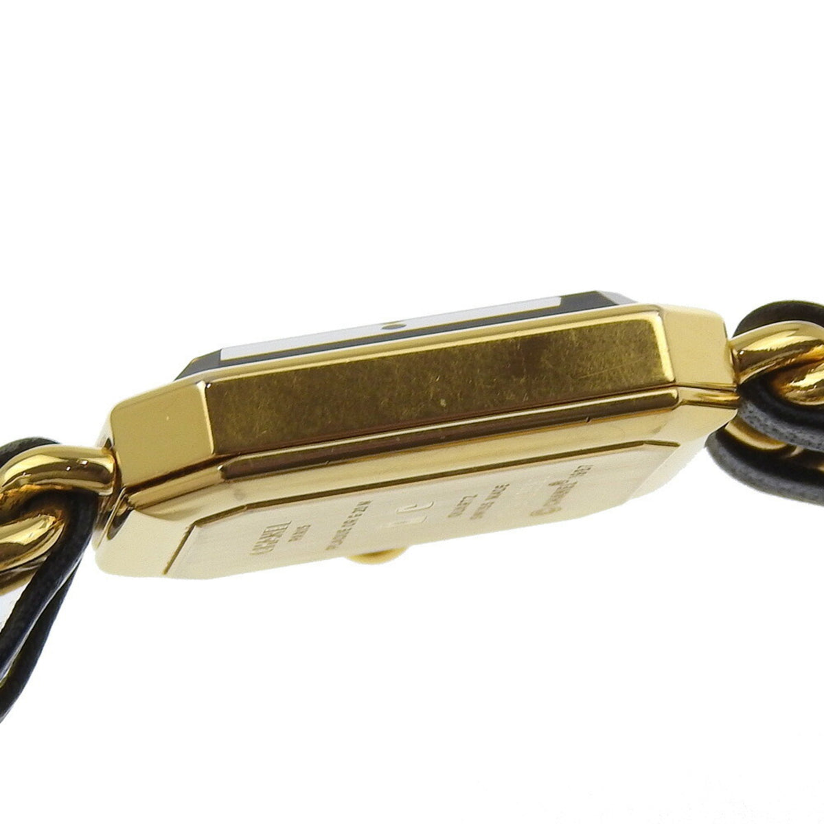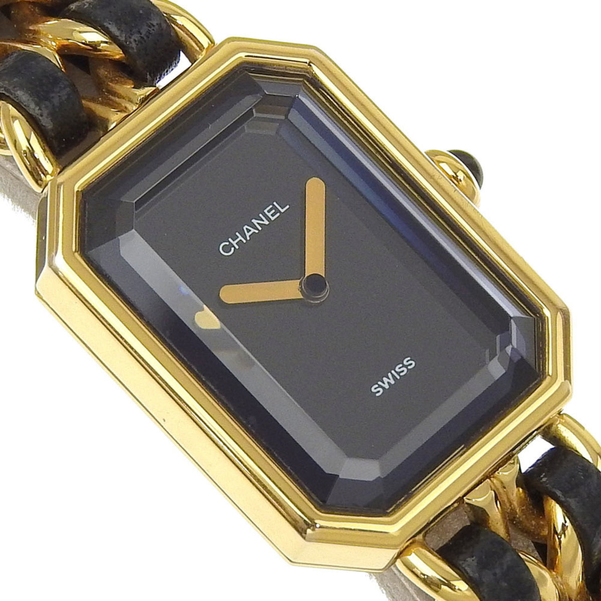 Montre CHANEL Premiere L d'occasion H0001 en plaqué or et cuir gaufré, affichage analogique à quartz, cadran noir, pour femme, I213024034