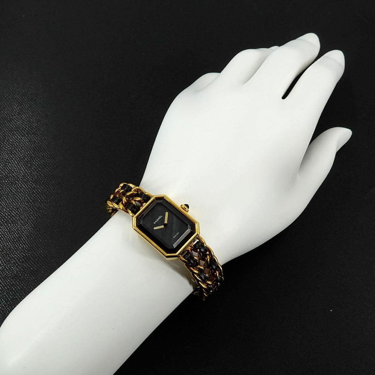 Montre femme CHANEL Premiere taille M H0001 d'occasion à quartz noir et or