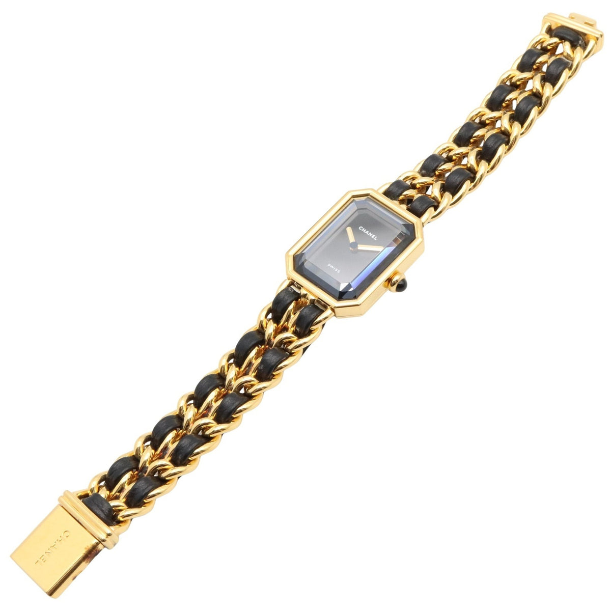 Pre-Owned CHANEL Premiere M Watch, GP (Gold Plated), Leather, Women's, Black, H0001