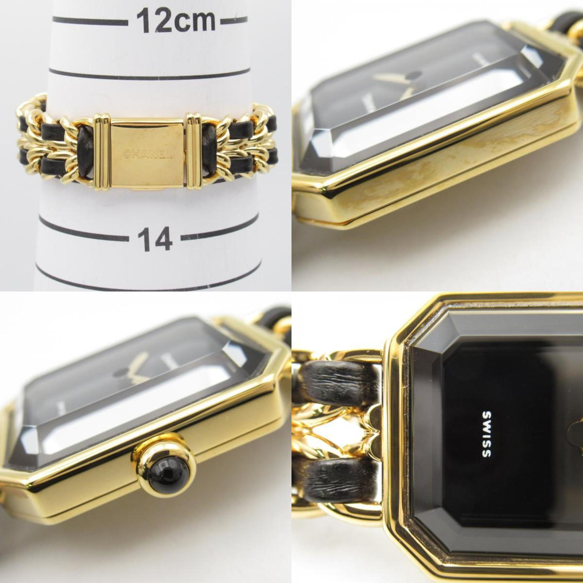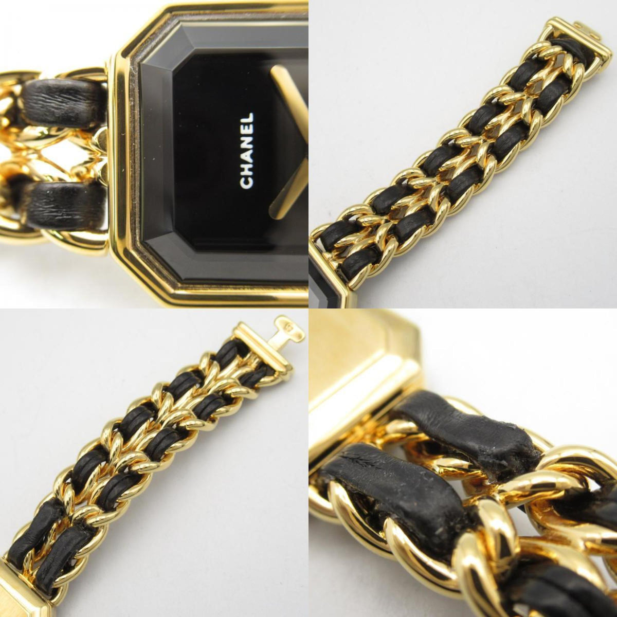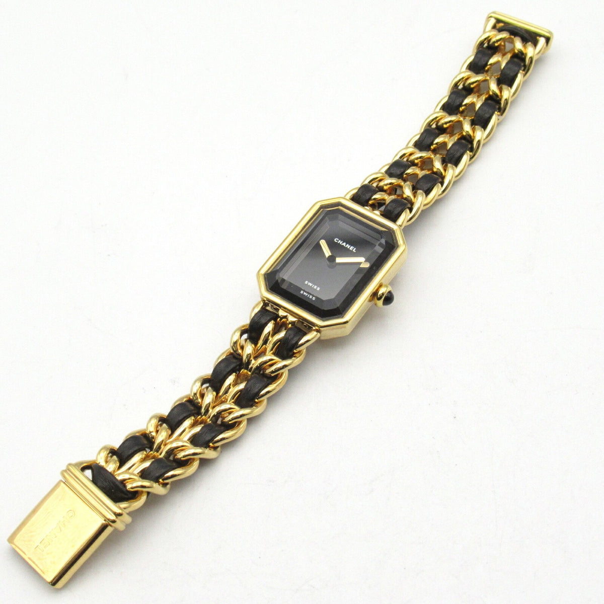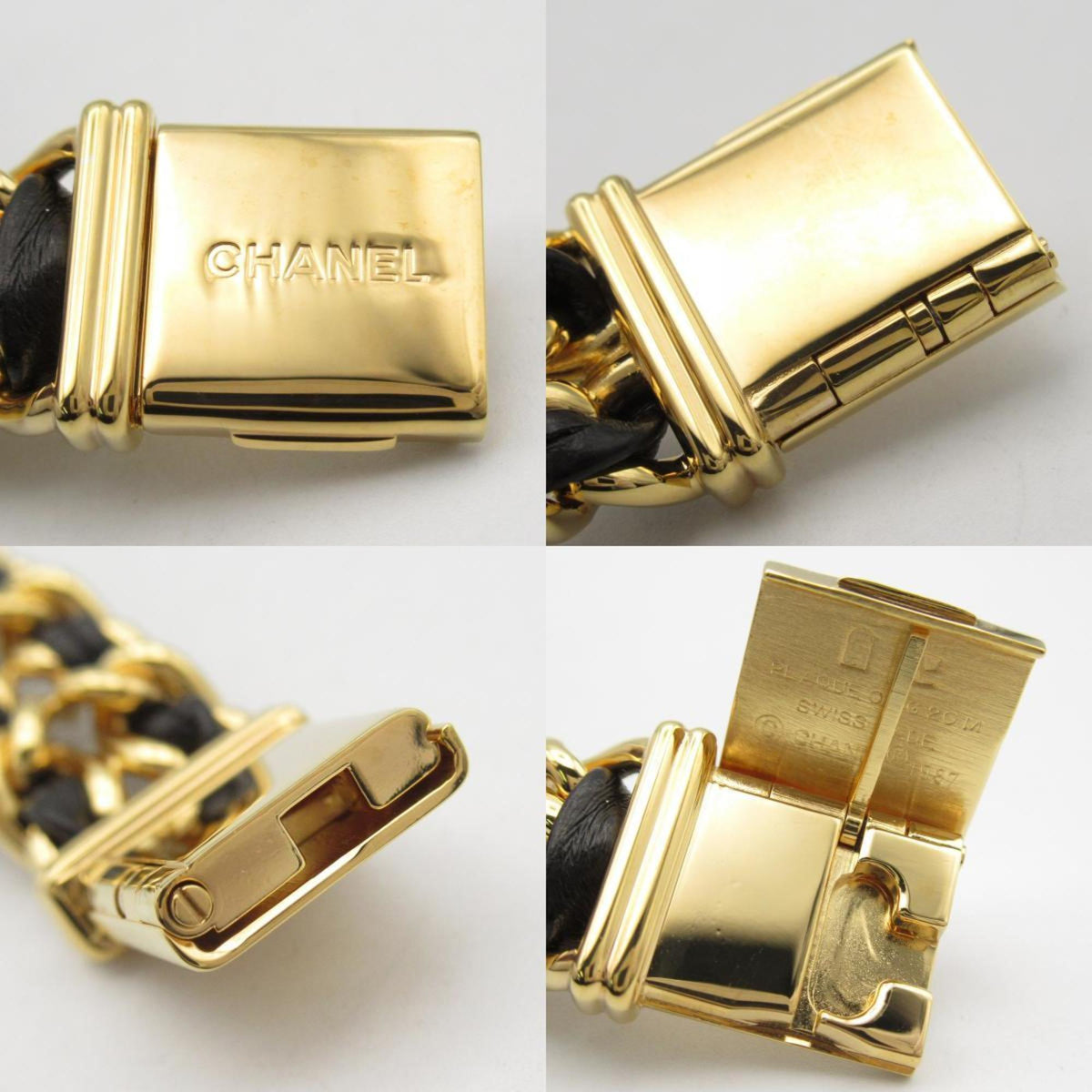 Montre CHANEL Premiere S GP d'occasion (plaquée or) en cuir noir pour femme H0001