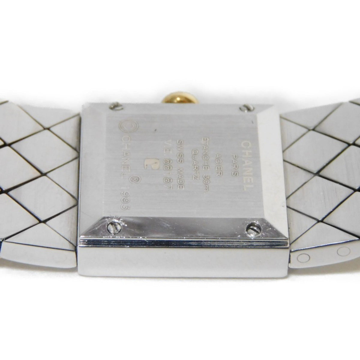 Montre CHANEL d'occasion, Matelasse, cadran noir, quartz, acier inoxydable/jaune, H0475, femme