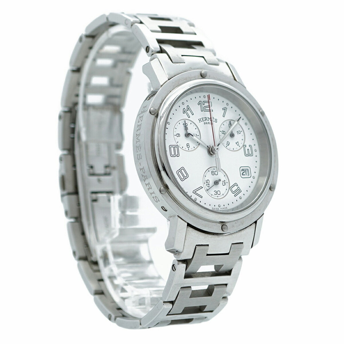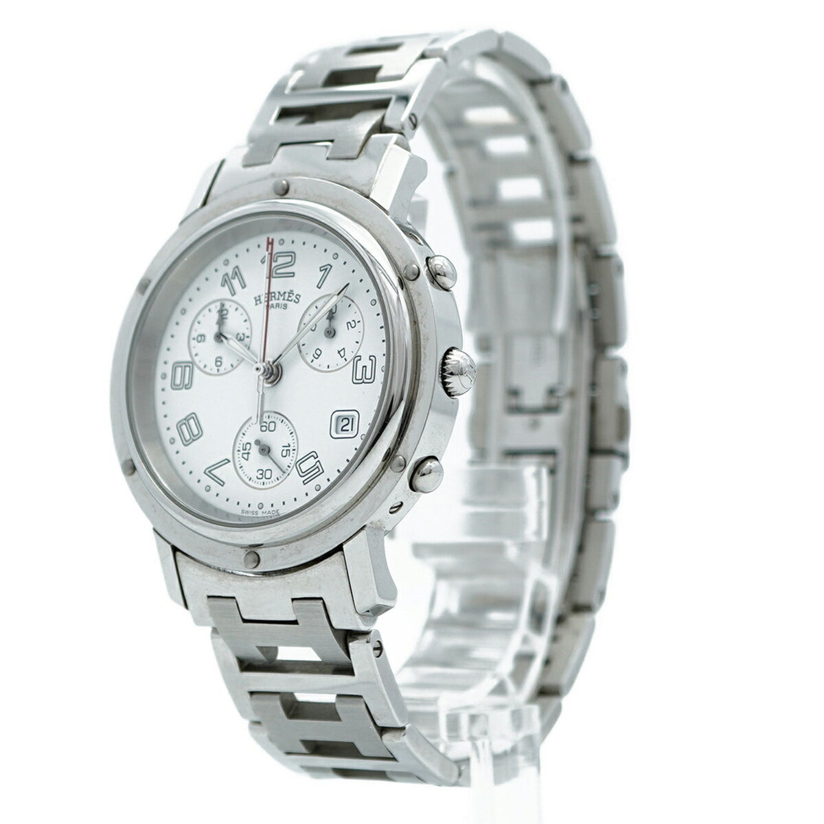 Pre-Owned Herm?s Clipper Chronograph CL1.910 White Dial Men's Watch