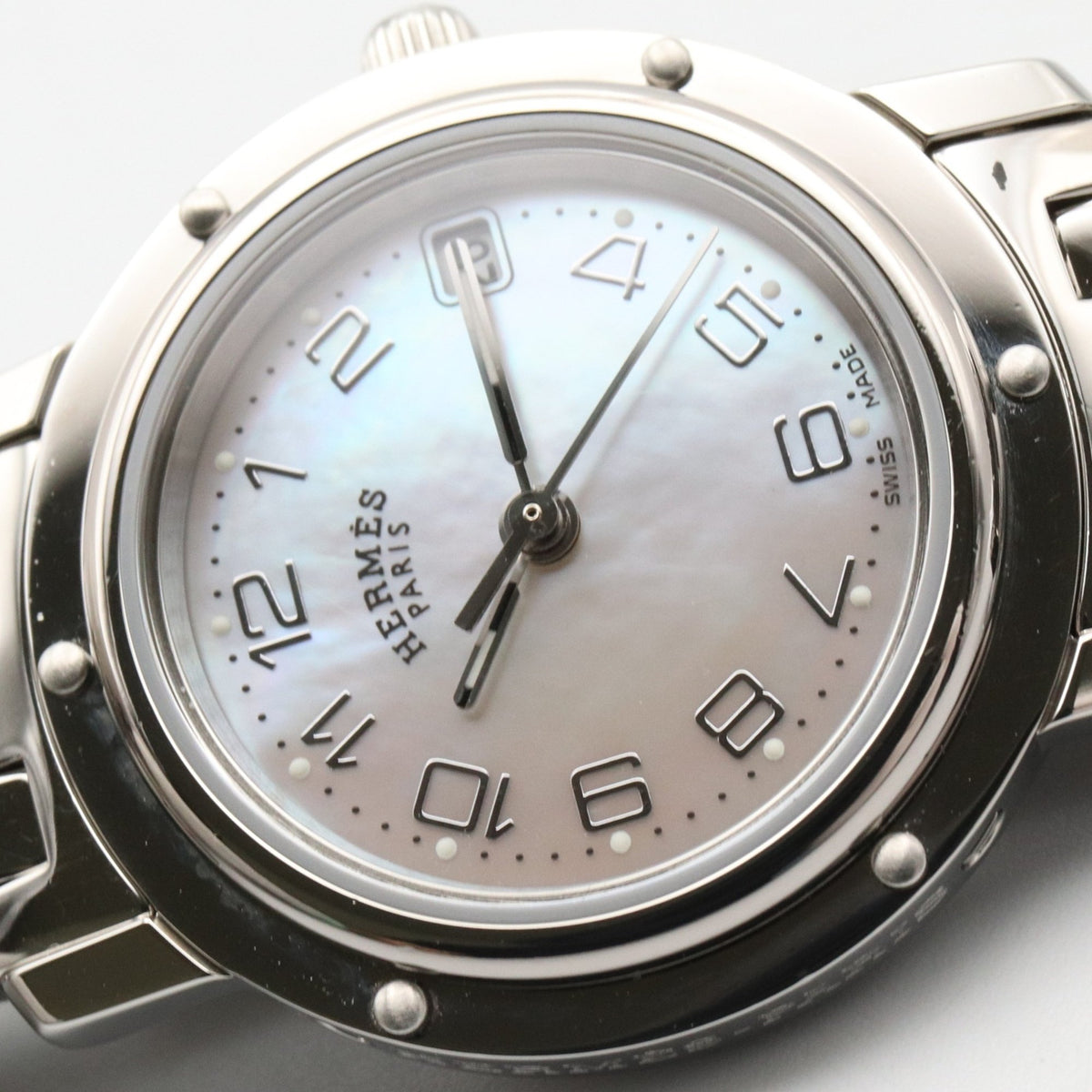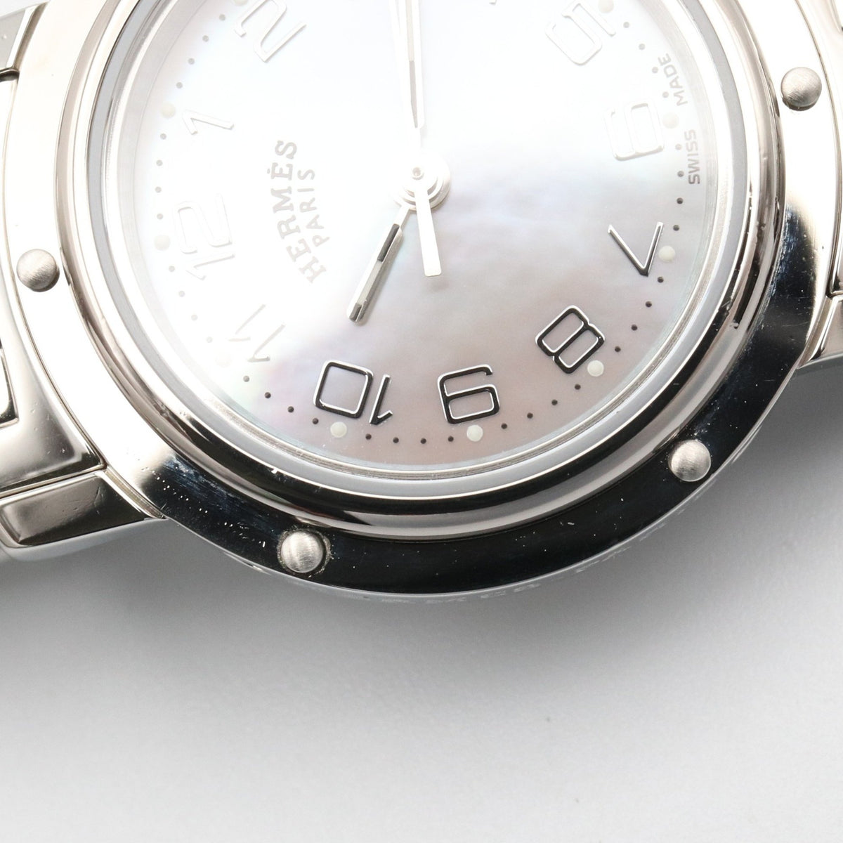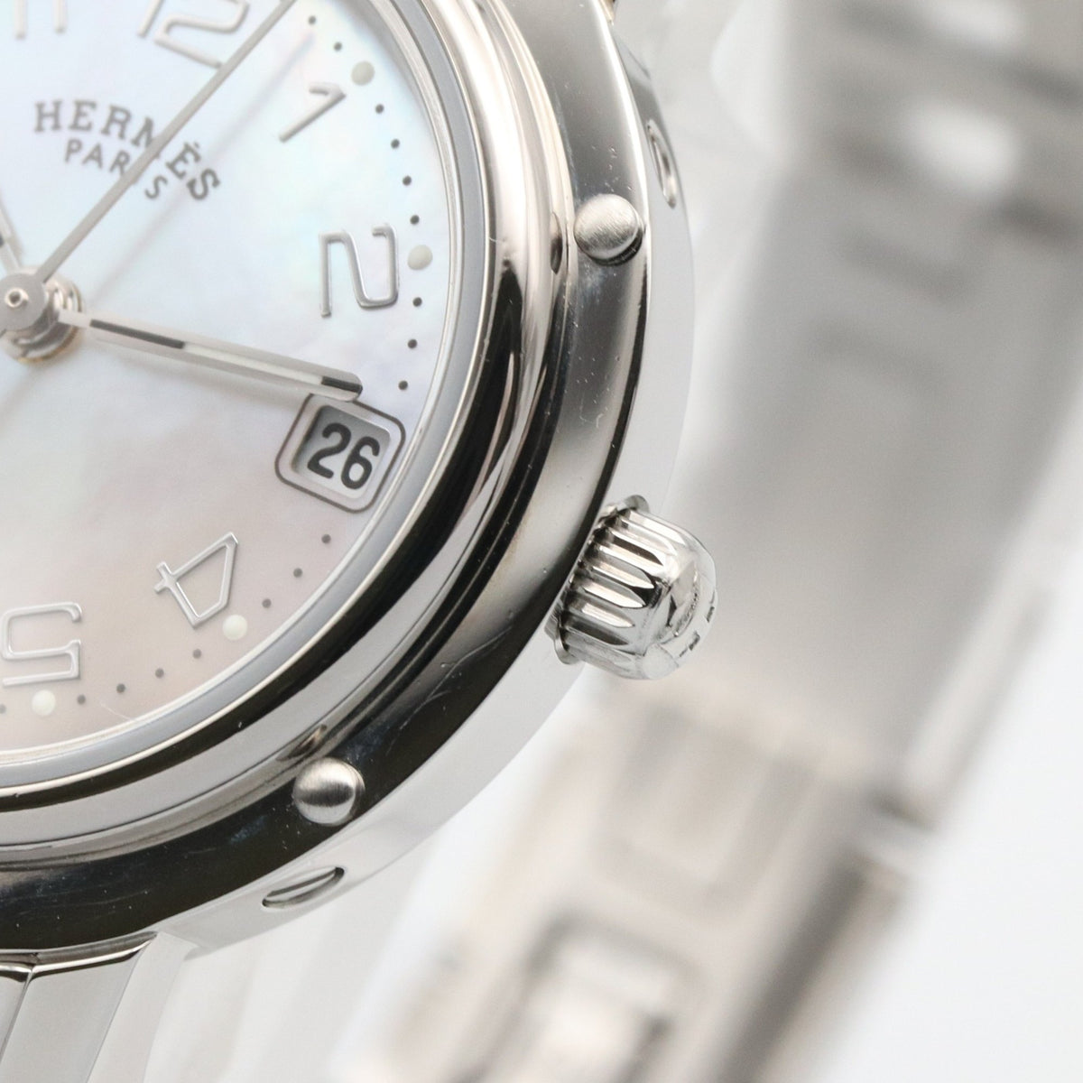 Pre-Owned Herm?s Clipper Nacr?e Watch, Stainless Steel, Women's, White, White Shell, CL4.210
