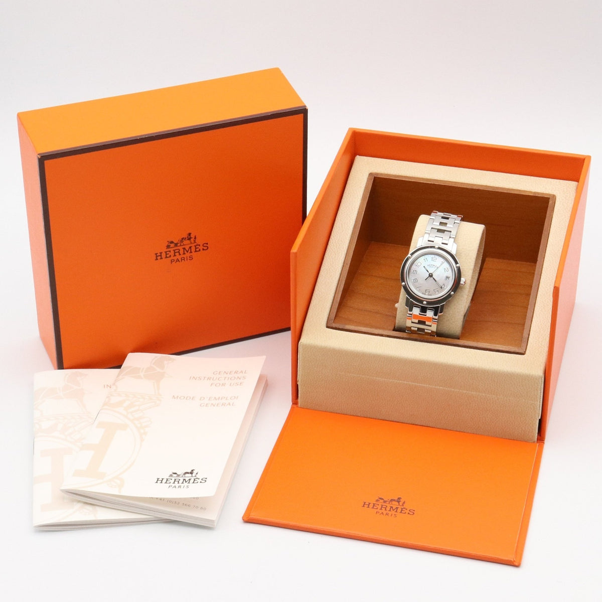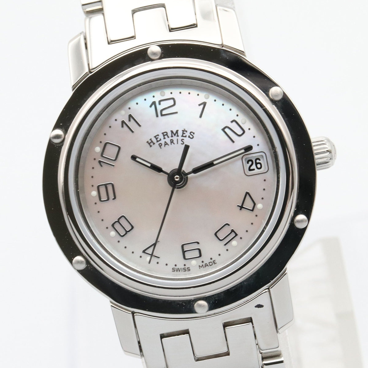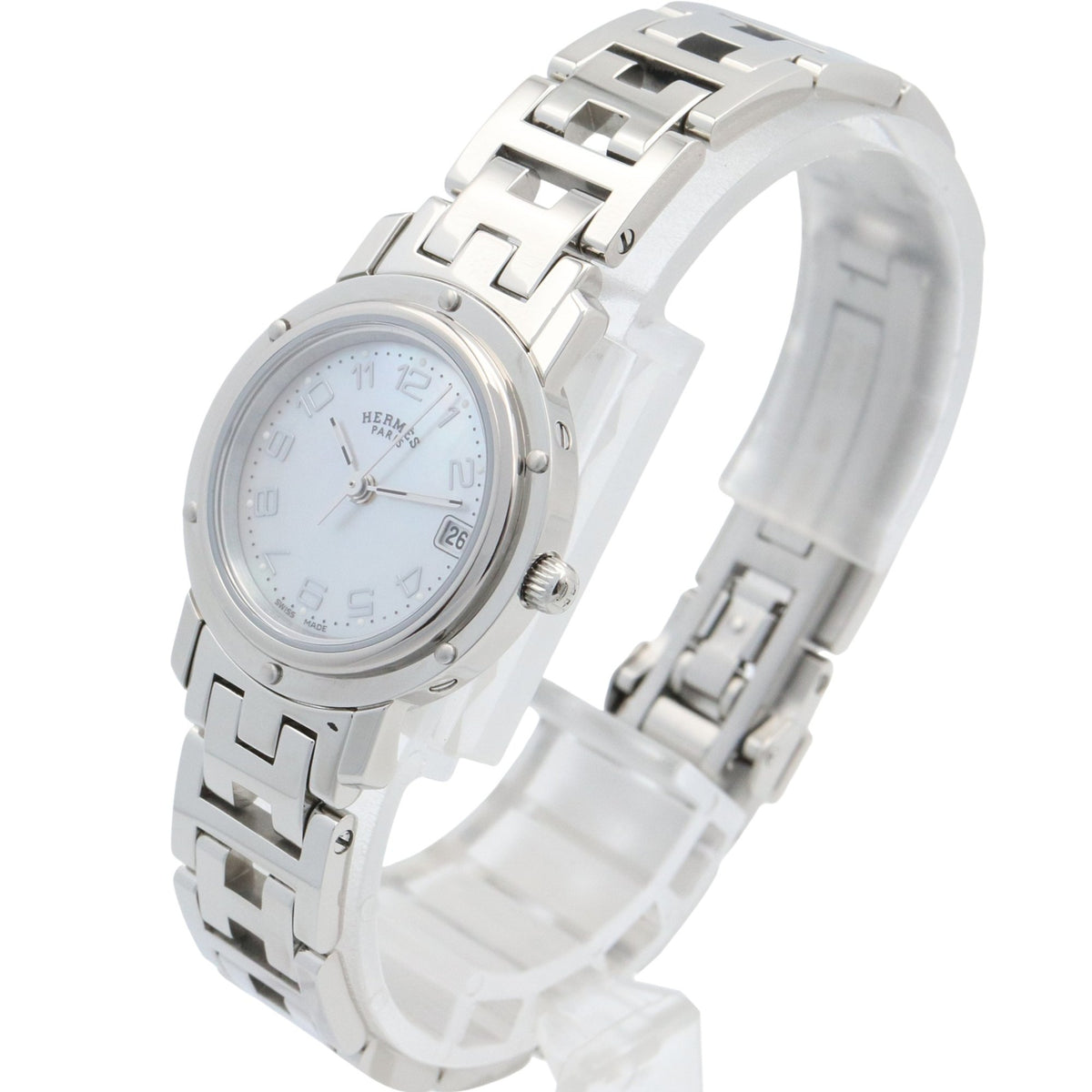 Pre-Owned Herm?s Clipper Nacr?e Watch, Stainless Steel, Women's, White, White Shell, CL4.210