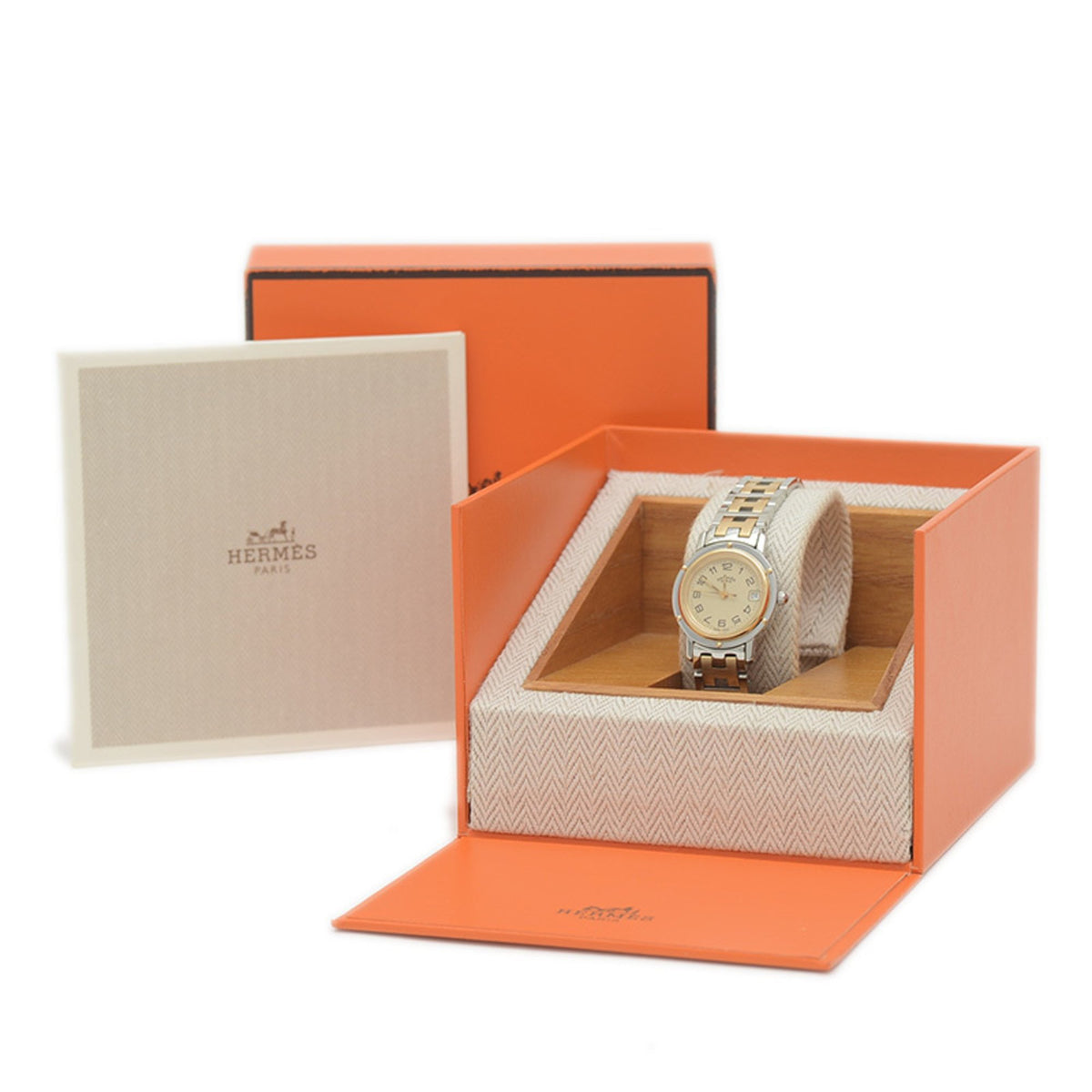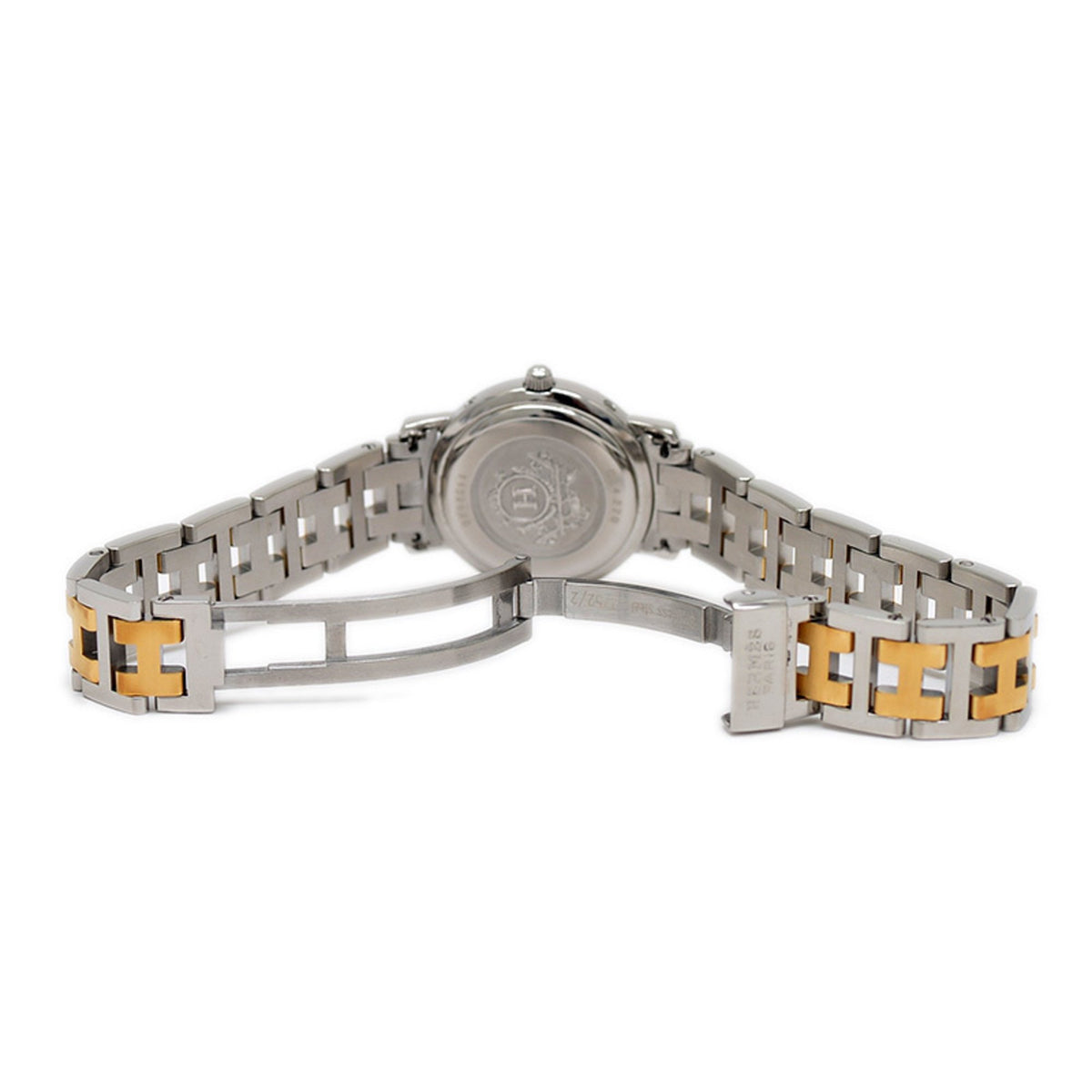 Pre-Owned Herm?s Clipper Women's Two-Tone Watch with White Dial, Stainless Steel, 18K Yellow Gold, Quartz Movement, CL4.220