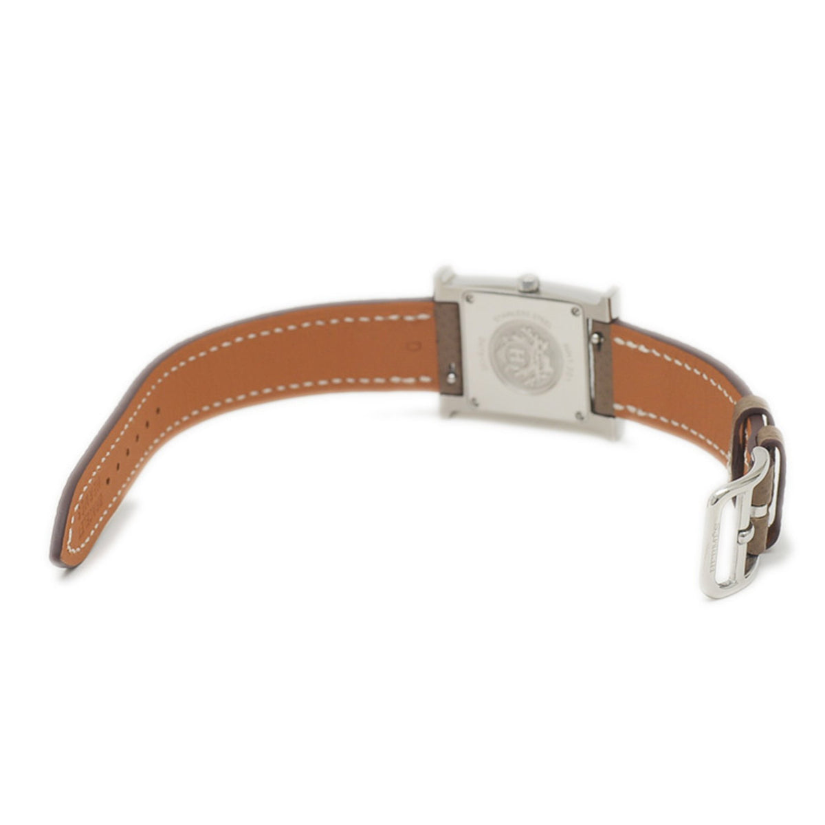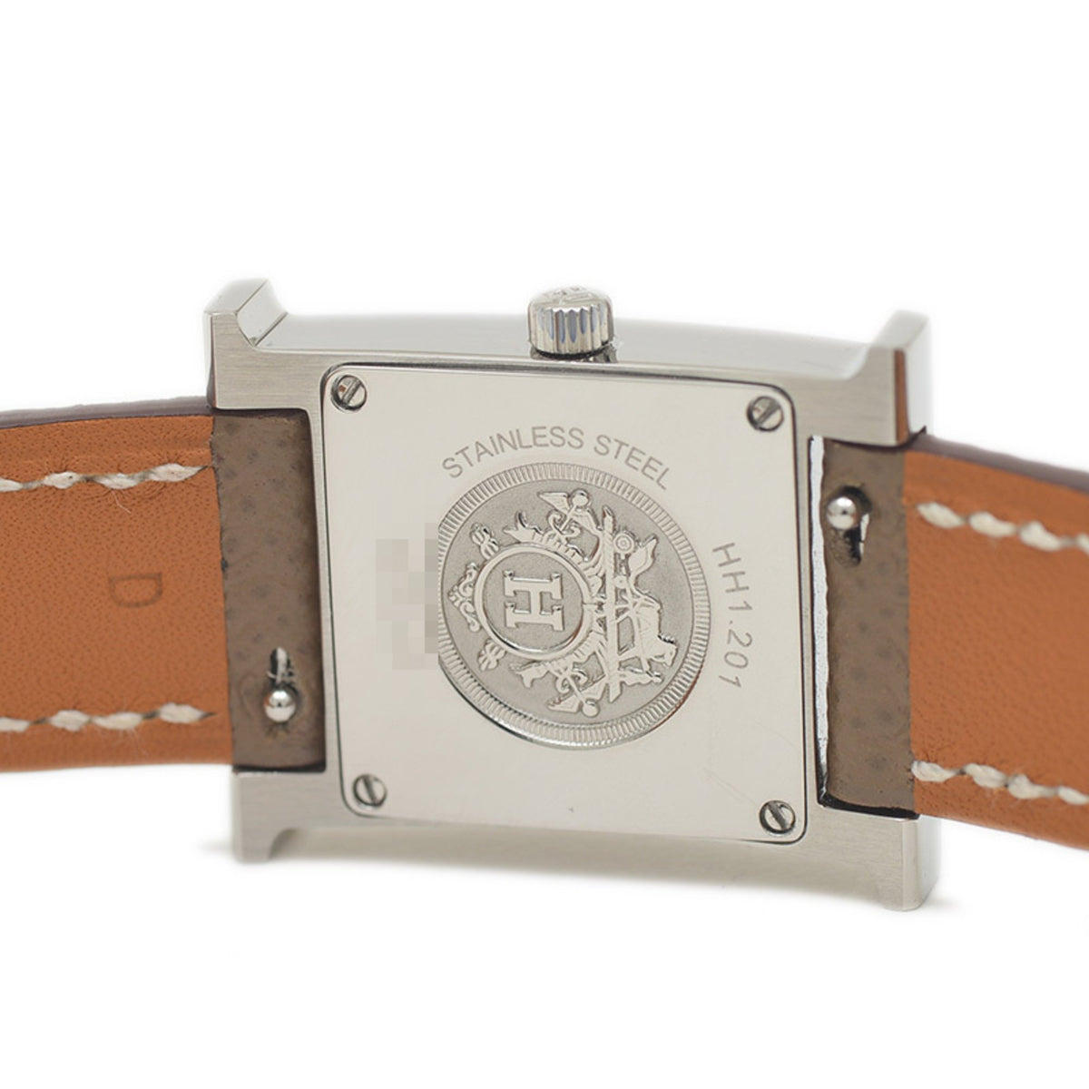 Pre-Owned Herm?s H Watch PM Women's White Dial Wristwatch with Silver Hardware and Leather Strap, Quartz Movement, HH1.201