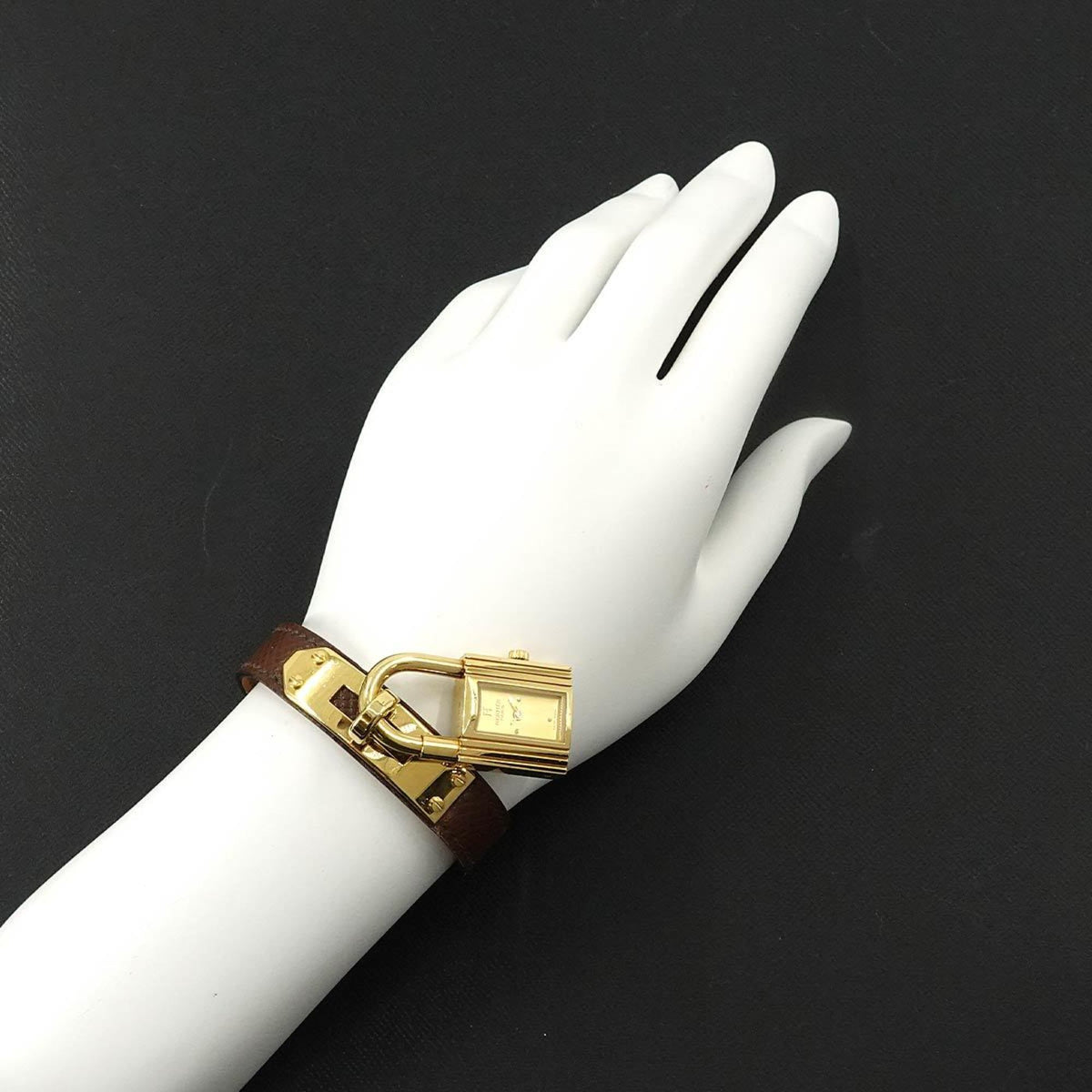 Pre-Owned Herm?s Kelly Watch Women's Gold Brown Quartz with Cadena