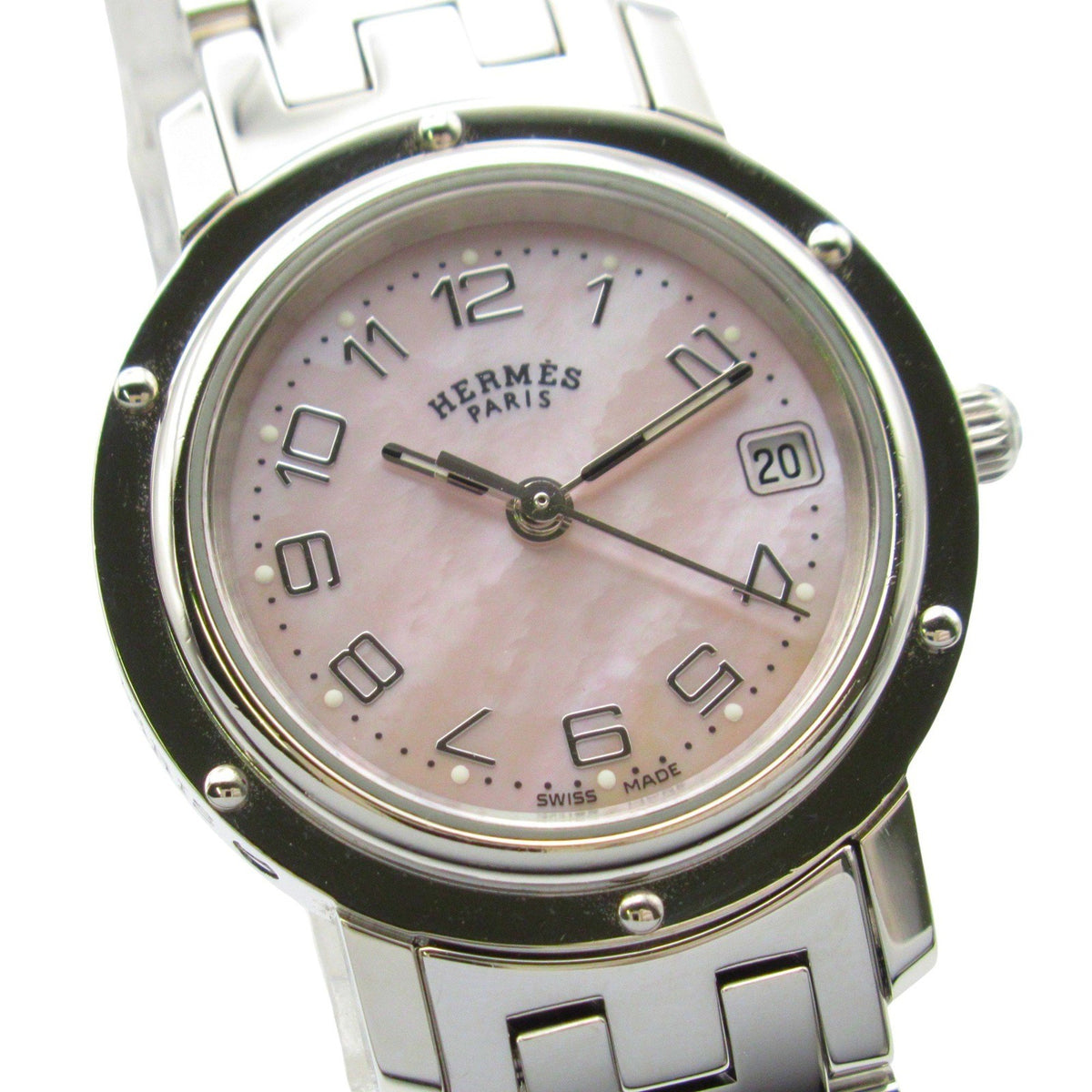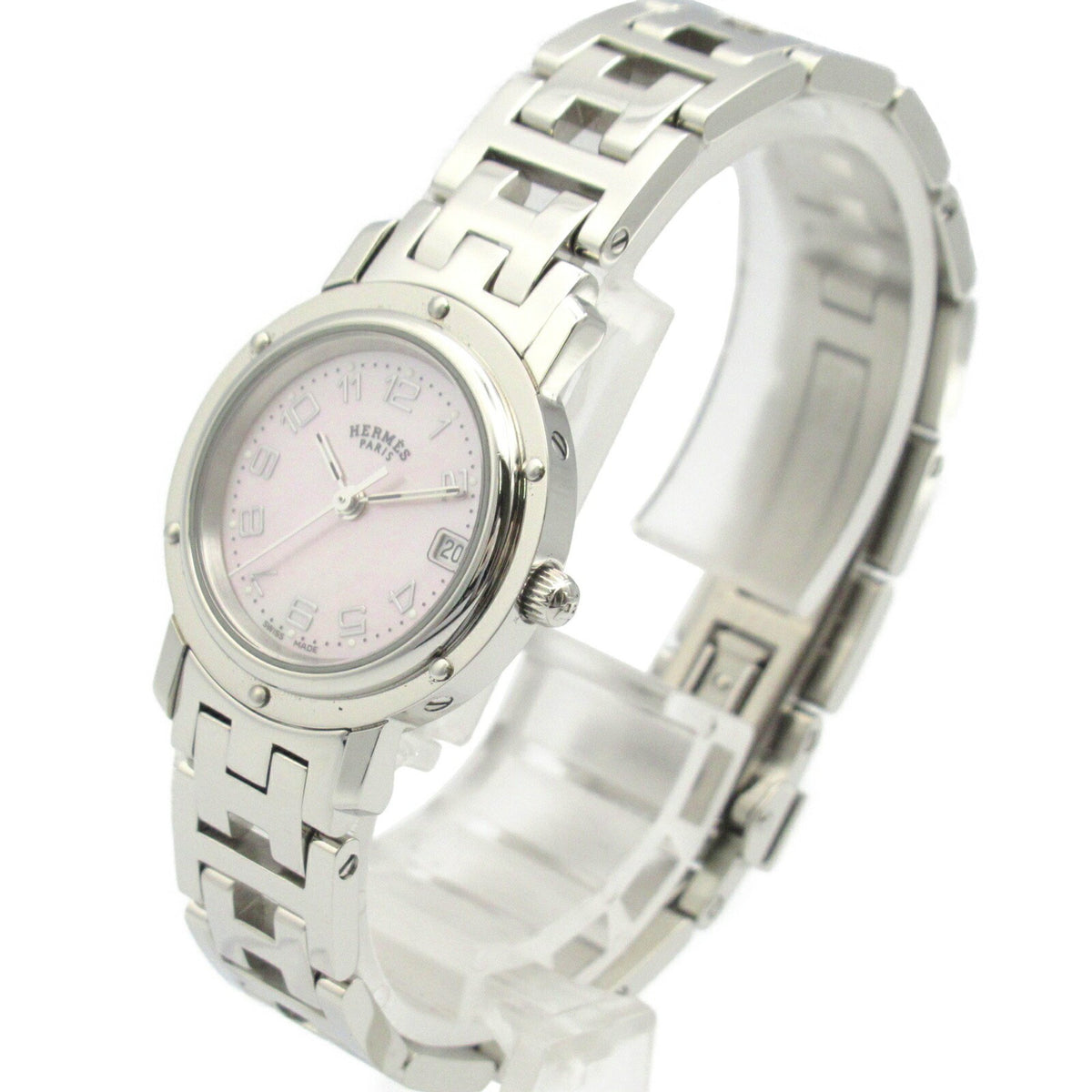 Montre Hermes Clipper Nacle d'occasion en acier inoxydable pour femme, coque rose CL4.210
