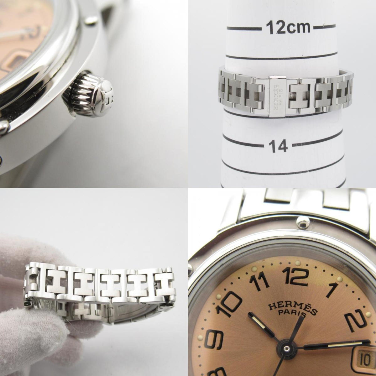 Montre Hermes Clipper d'occasion en acier inoxydable pour femme, rose CL4.210