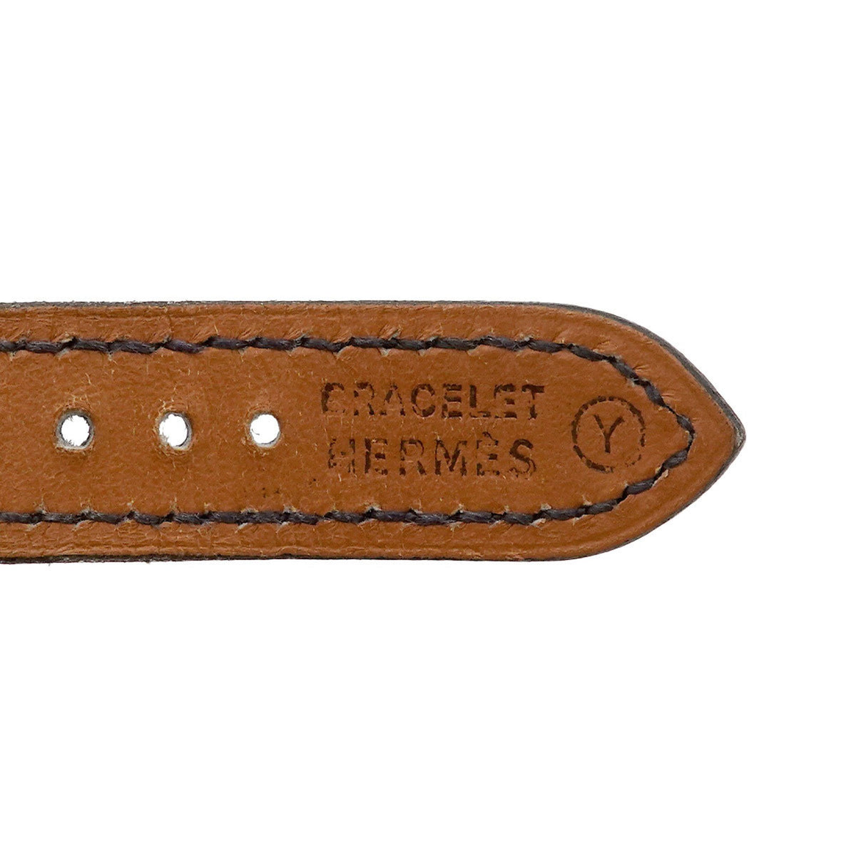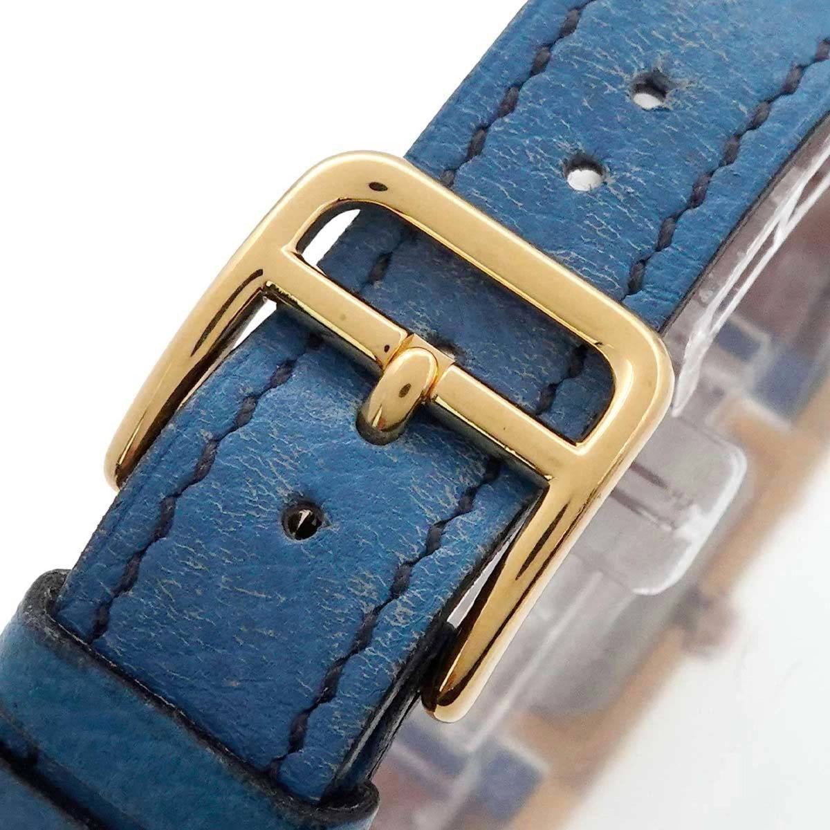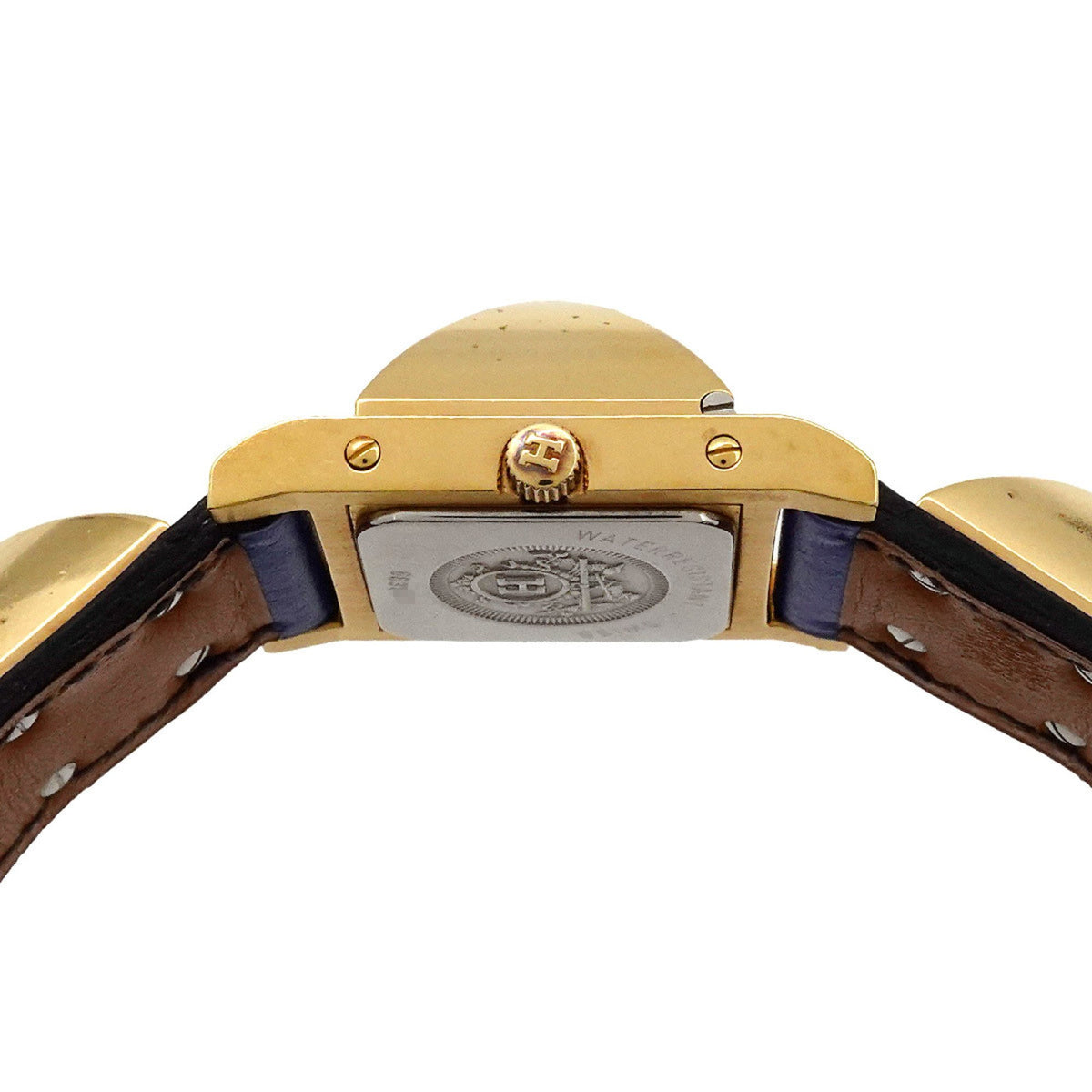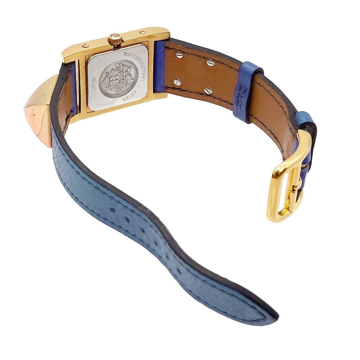 Montre Hermès Medor d'occasion pour femme, modèle Pyramide, clous dorés, cuir blanc et bleu, quartz