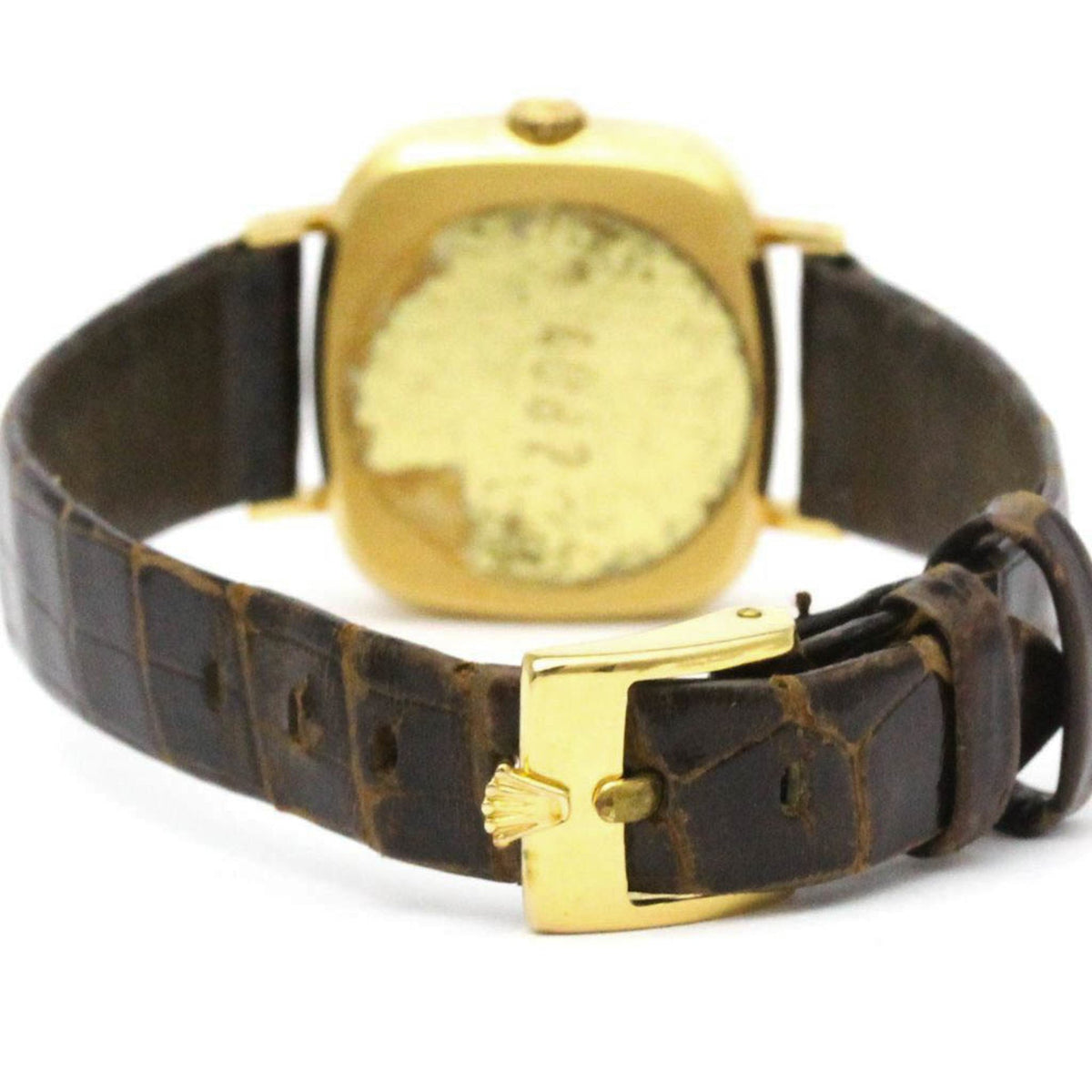Pre-Owned ROLEX Cellini 4082 18K Gold Leather Hand-Winding Ladies Watch