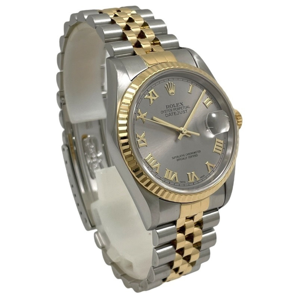 Pre-Owned ROLEX Datejust 16233 Men's Stainless Steel Yellow Gold Automatic Watch, K Series, Gray Roman Slate