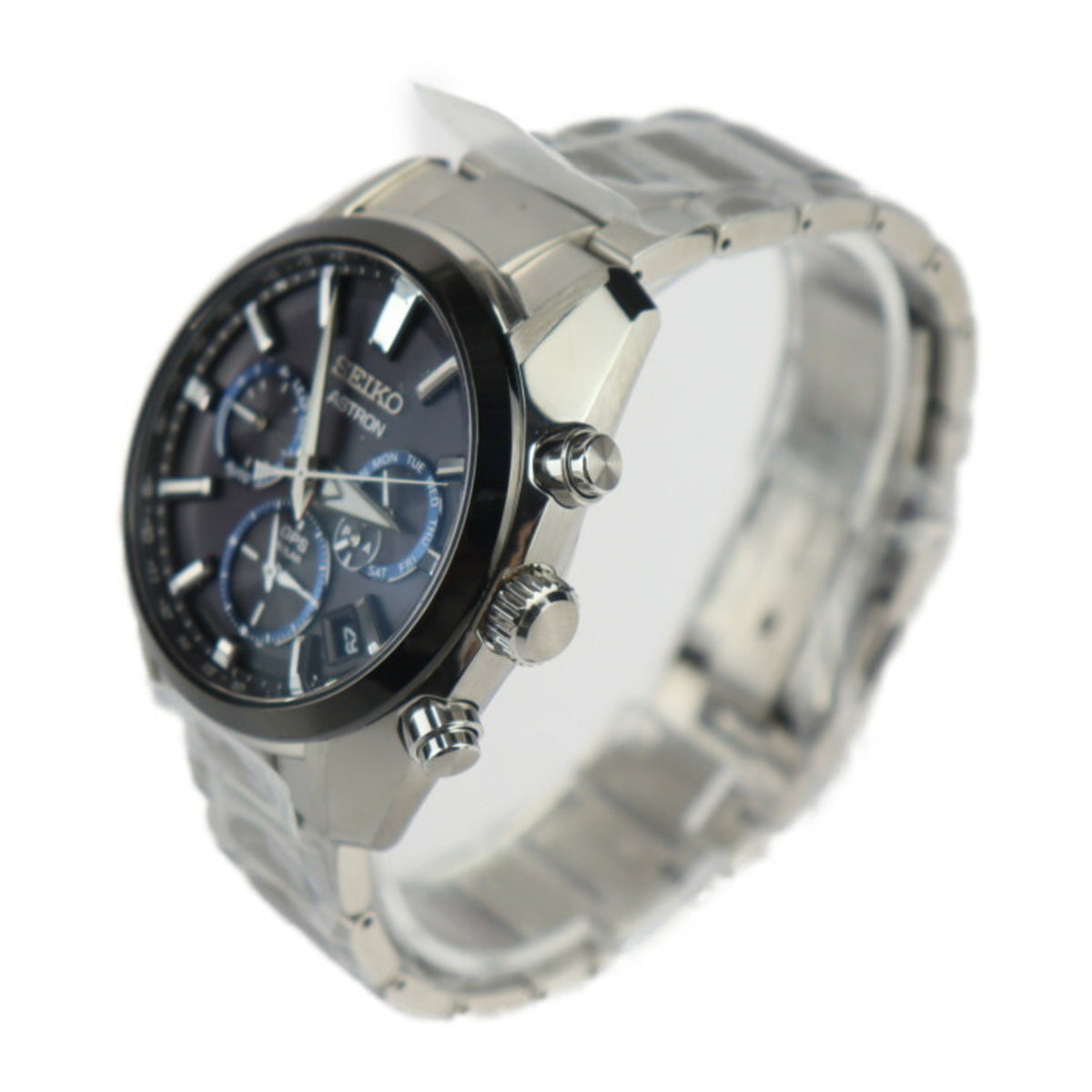 Montre d'occasion SEIKO ASTRON Dual Time 5X Series SBXC053, acier inoxydable, argent, noir, bleu, radio solaire, GPS 5X53-0AJ0 R2425073010101