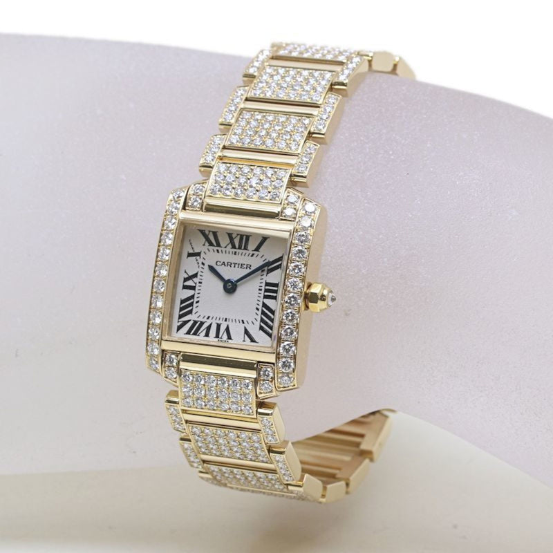 Pre-Owned CARTIER Tank Fran?aise SM WE1001RD Women's Watch with Diamond Bezel and Bracelet, 18K Yellow Gold, 40098
