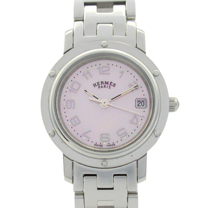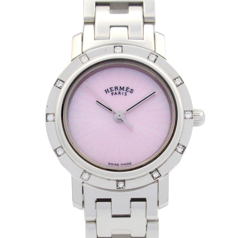 Montre Hermes Clipper Nacle d'occasion en acier inoxydable pour femme, coque rose CL4.210