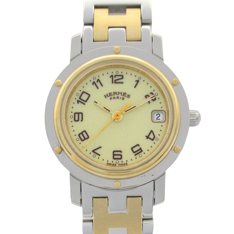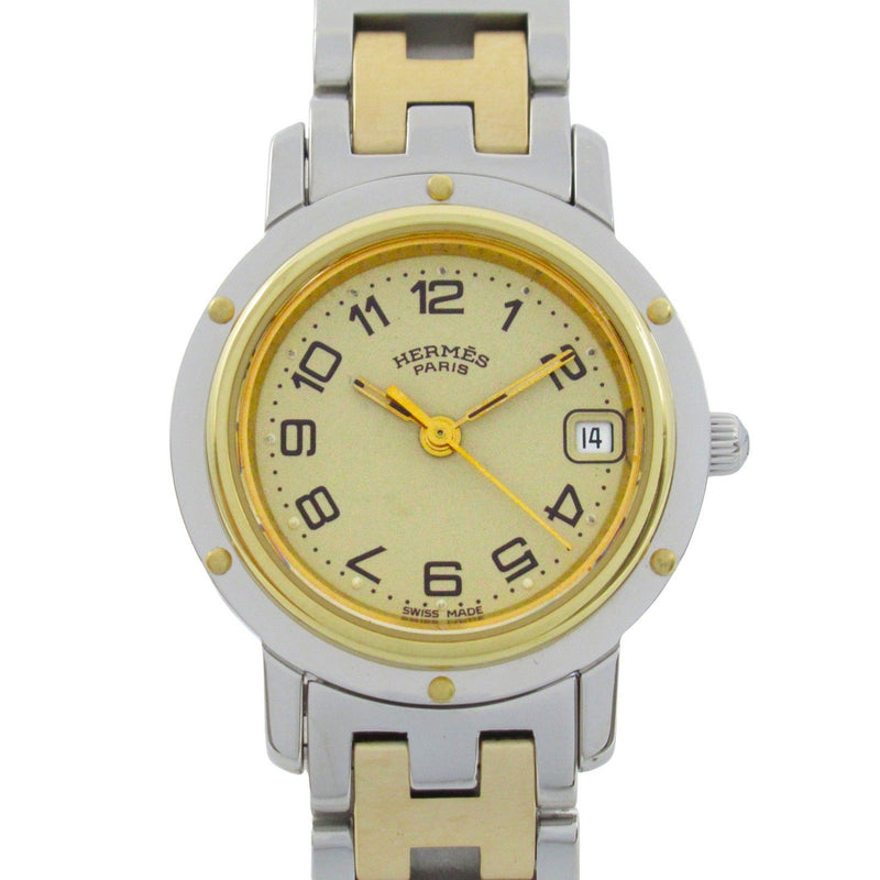 Montre Hermes Clipper GP d'occasion (plaquée or) en acier inoxydable pour femme, couleur ivoire CL4.220
