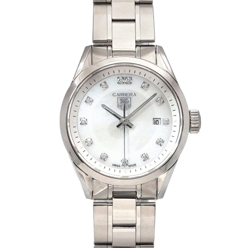 Montre TAG Heuer Carrera WV1411 d'occasion pour femme, 13P, diamant, date, coque blanche, quartz