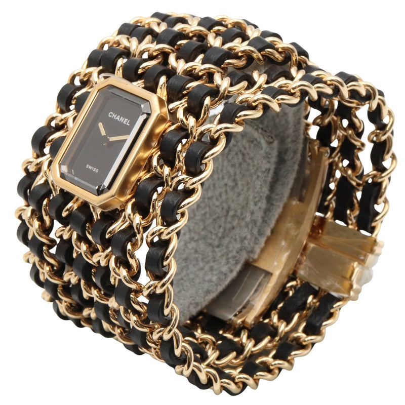 Pre-Owned CHANEL Premiere S Watch, GP (Gold Plated), Leather, Women's, Black, H0001