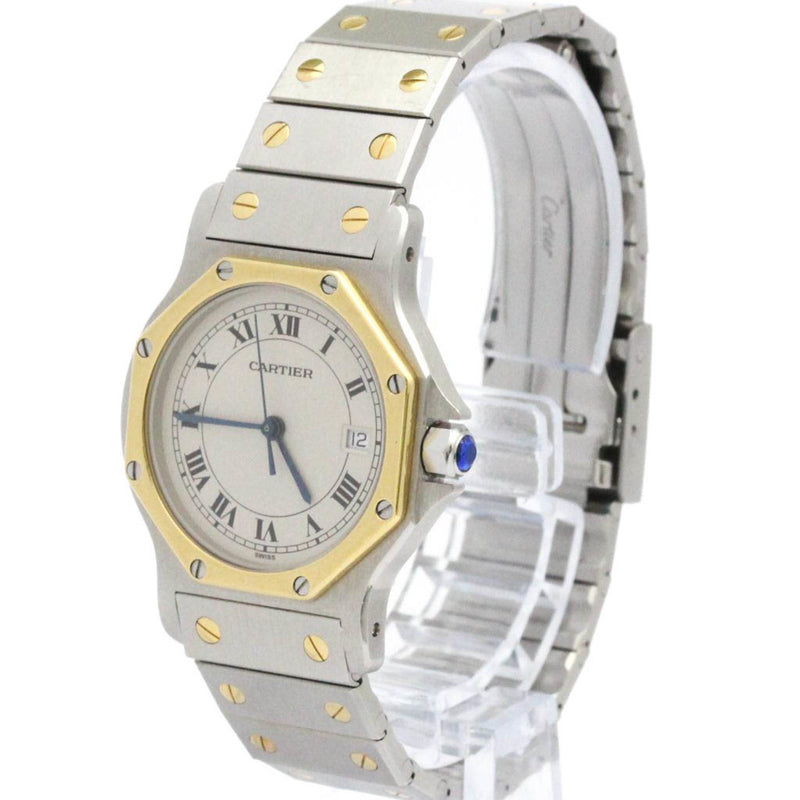 Pre-Owned CARTIER Santos Octagon 18K Gold Steel Mid Size Watch 187902 Polished