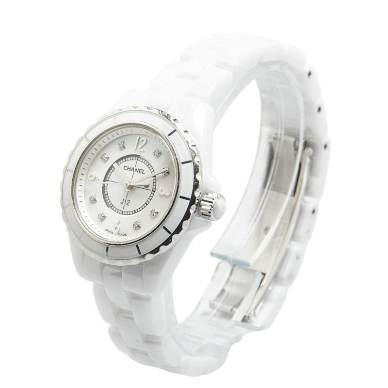 Pre-Owned CHANEL J12 8P Diamond Watch H2570 Quartz Silver Dial White Ceramic Women's
