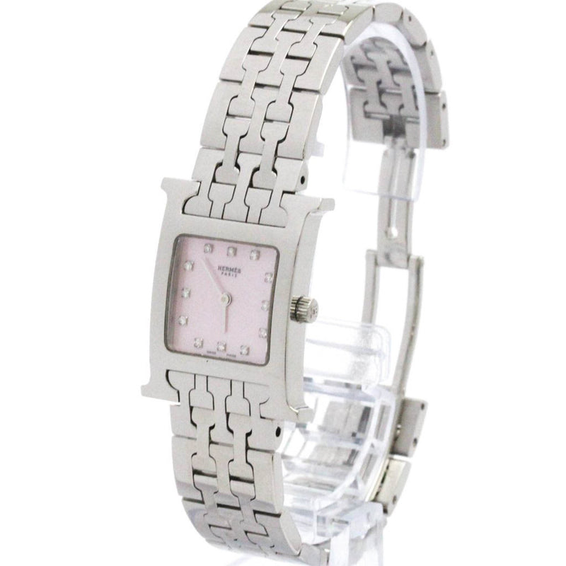 Pre-Owned HERMES H Watch Diamond Pink MOP Dial Steel Quartz Watch HH1.210 Polished