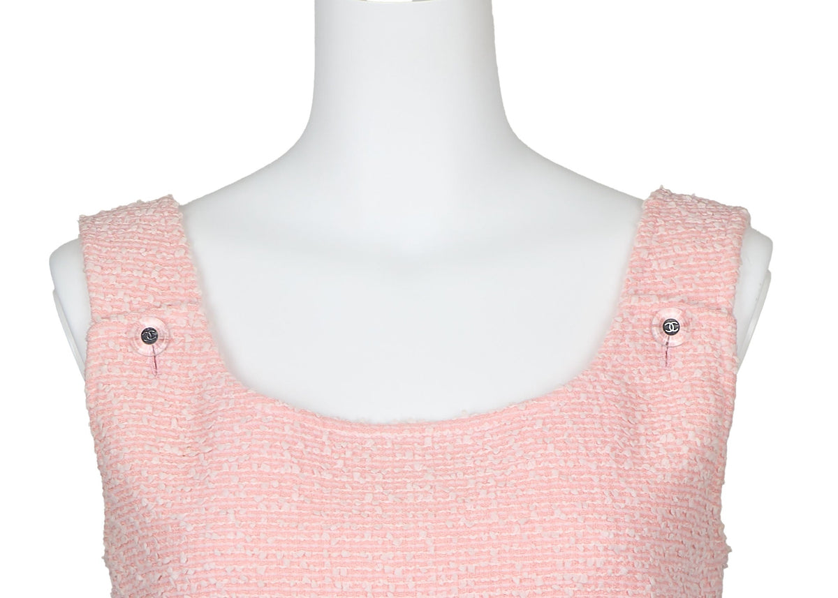 La robe sans manches Coco Button présente une silhouette flatteuse avec une longueur de 91 cm, une largeur d'épaule d'environ 37 cm et une largeur de 39 cm, conçue pour sublimer votre silhouette naturelle. Les charmants détails de boutons ajoutent une touche d'élégance, tandis que le design coupé-cousu témoigne de l'engagement de CHANEL pour la qualité et le savoir-faire artisanal.