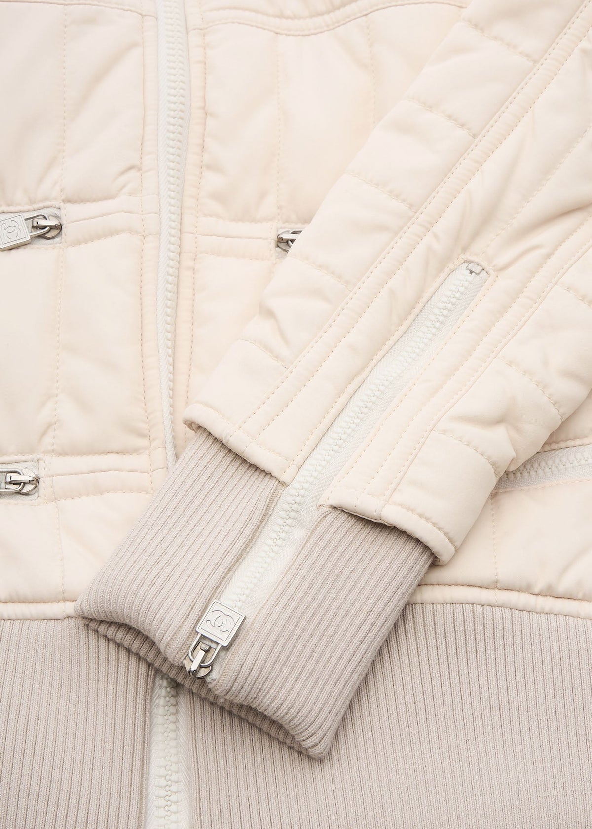 Découvrez l'alliance parfaite du style et du confort avec la veste consignée en coton CHANEL Sports Line . Cet élégant vêtement d'extérieur beige est conçu pour les femmes modernes qui apprécient à la fois la mode et la fonctionnalité. Conçue avec précision, cette veste est idéale pour de nombreuses occasions, que ce soit pour une journée décontractée ou une soirée habillée.