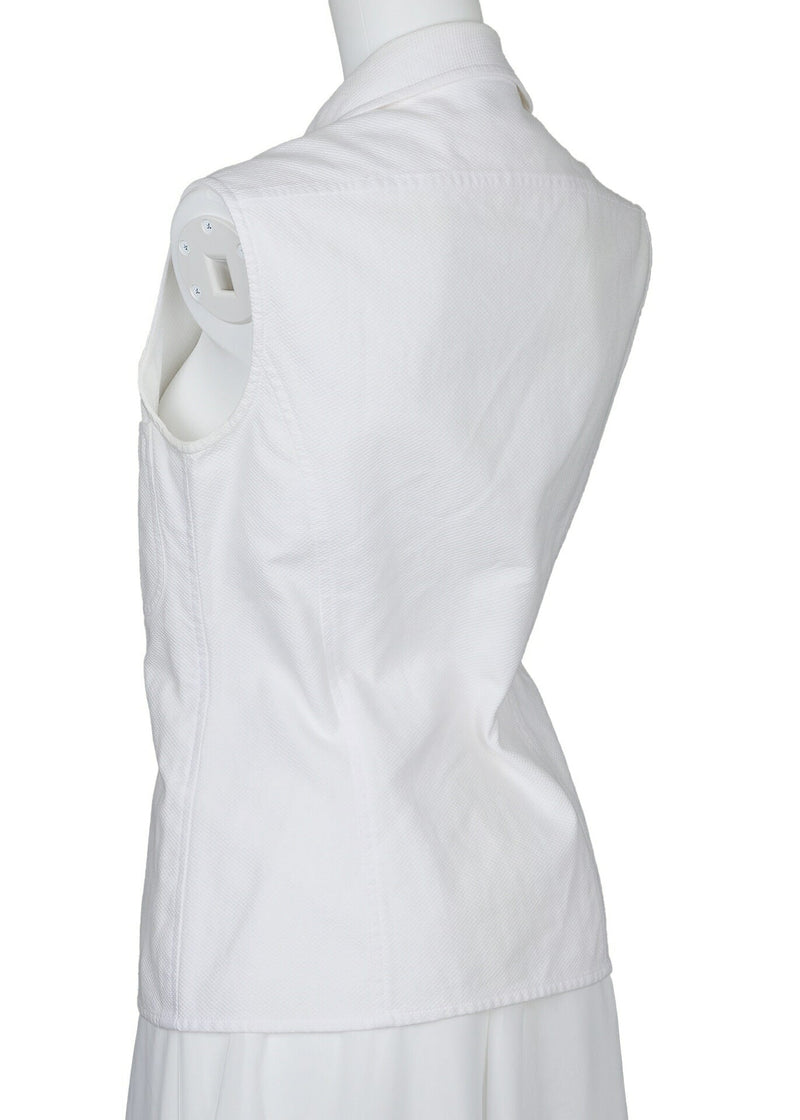 Chemise sans manches d'occasion, col, coton, blanche, finitions argentées