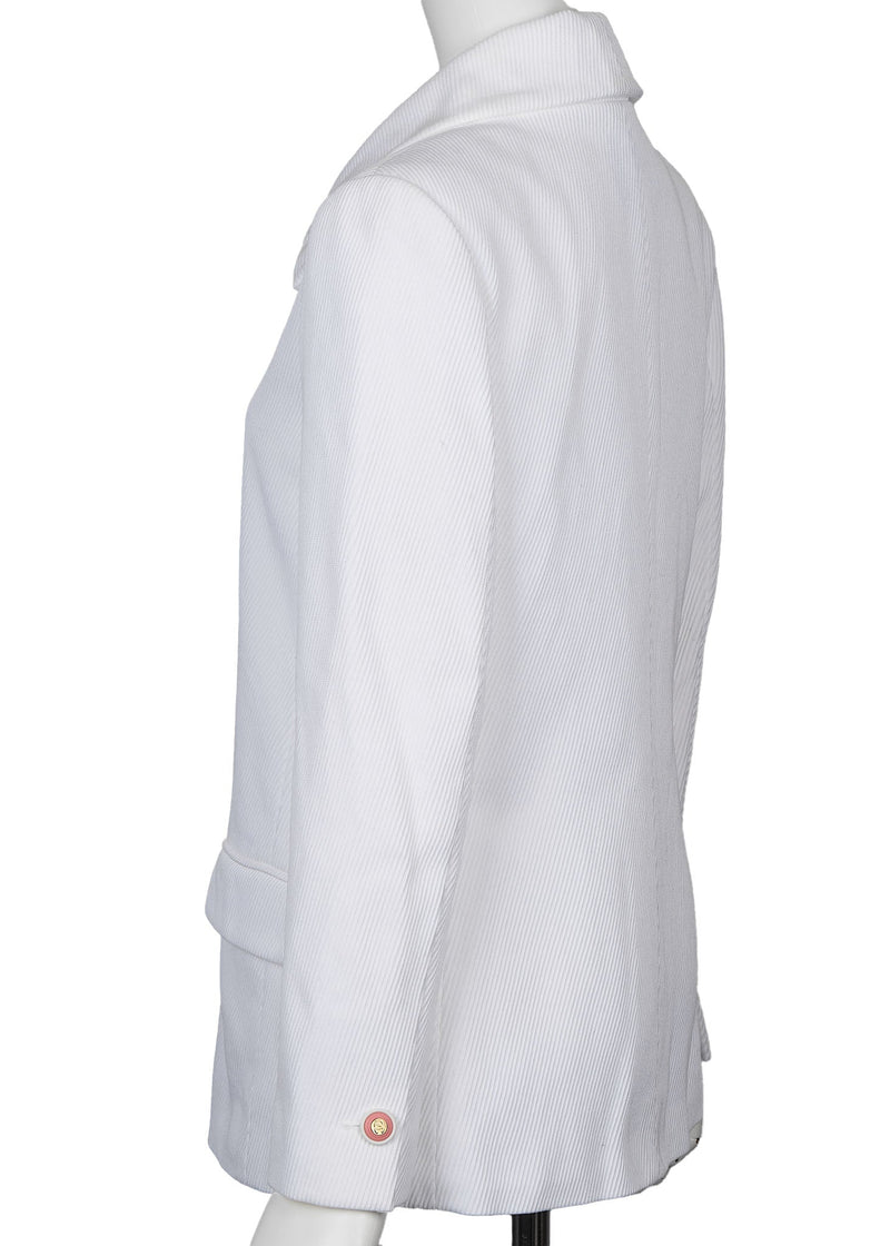 Veste d'occasion, bouton coco, manches longues, coton, blanche, finitions dorées, d'occasion