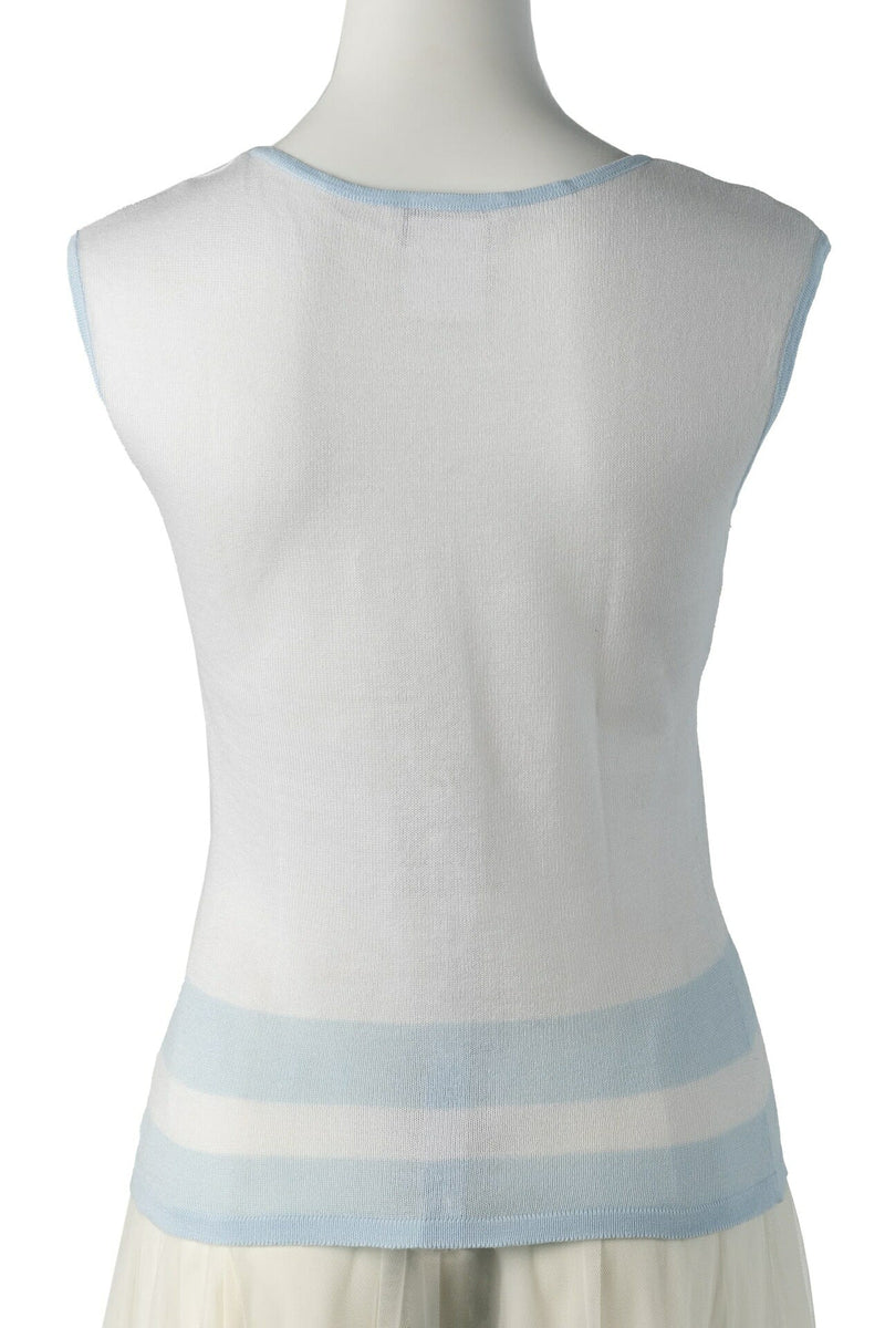 T-shirt sans manches d'occasion, coupé-cousu, coton, blanc, finitions argentées, d'occasion