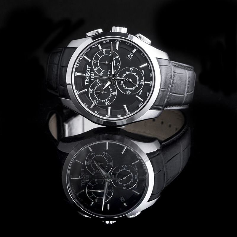Montre T-Classic 41 mm en acier inoxydable avec cadran noir T035.617.16.051.00