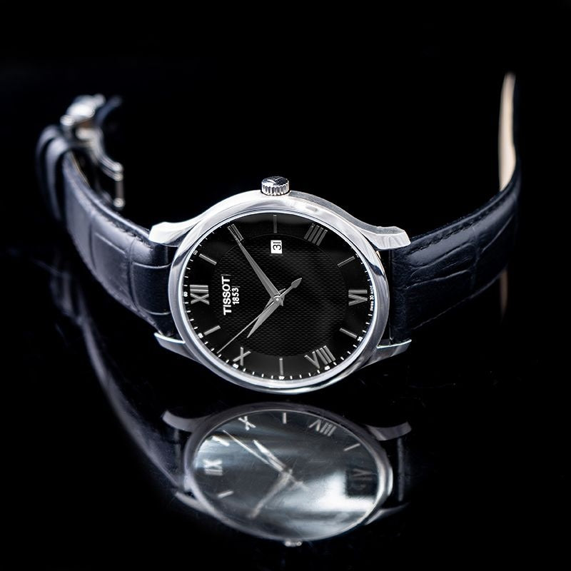Montre T-Classic 42 mm en acier inoxydable avec cadran noir T063.610.16.058.00