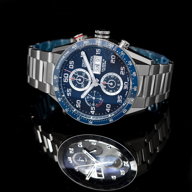 Montre Carrera 43 mm en acier inoxydable avec cadran bleu CV2A1V.BA0738