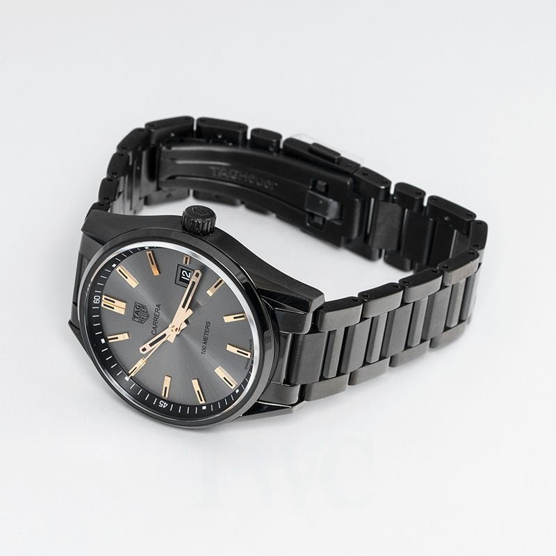 Montre Carrera 39 mm, cadran noir, acier, WAR1113.BA0602