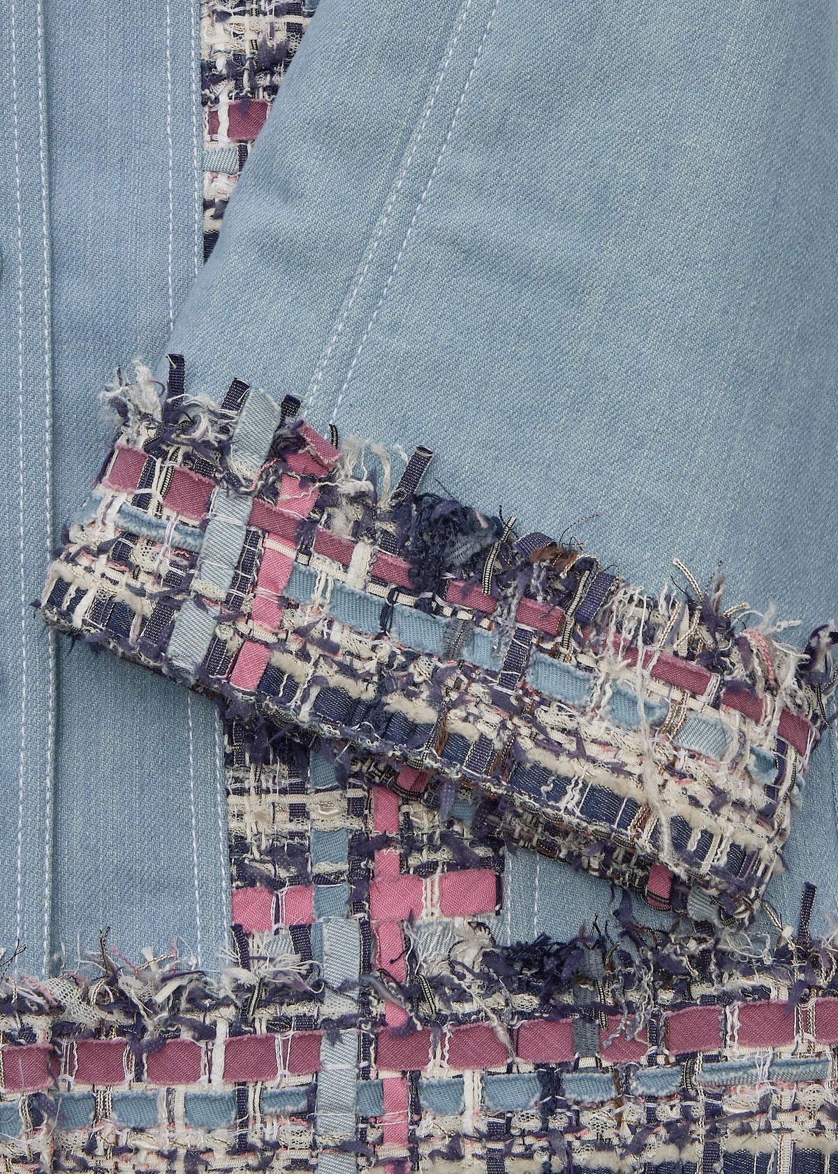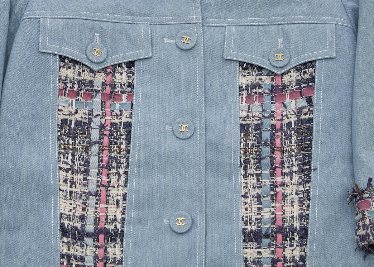 Sublimez votre garde-robe avec la veste en jean tweed à boutons Coco de Chanel , une pièce magnifique qui allie à la perfection sophistication et chic décontracté. Confectionnée à partir de matières haut de gamme, cette veste arbore un luxueux mélange de 98 % de coton et de détails en tweed raffinés, alliant confort et style.