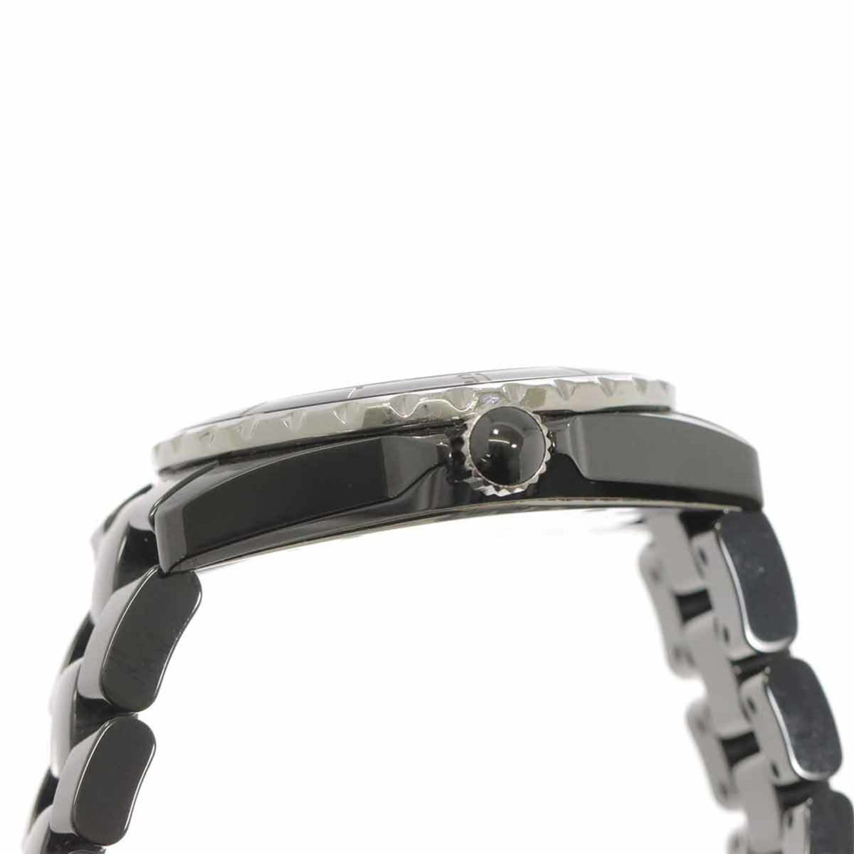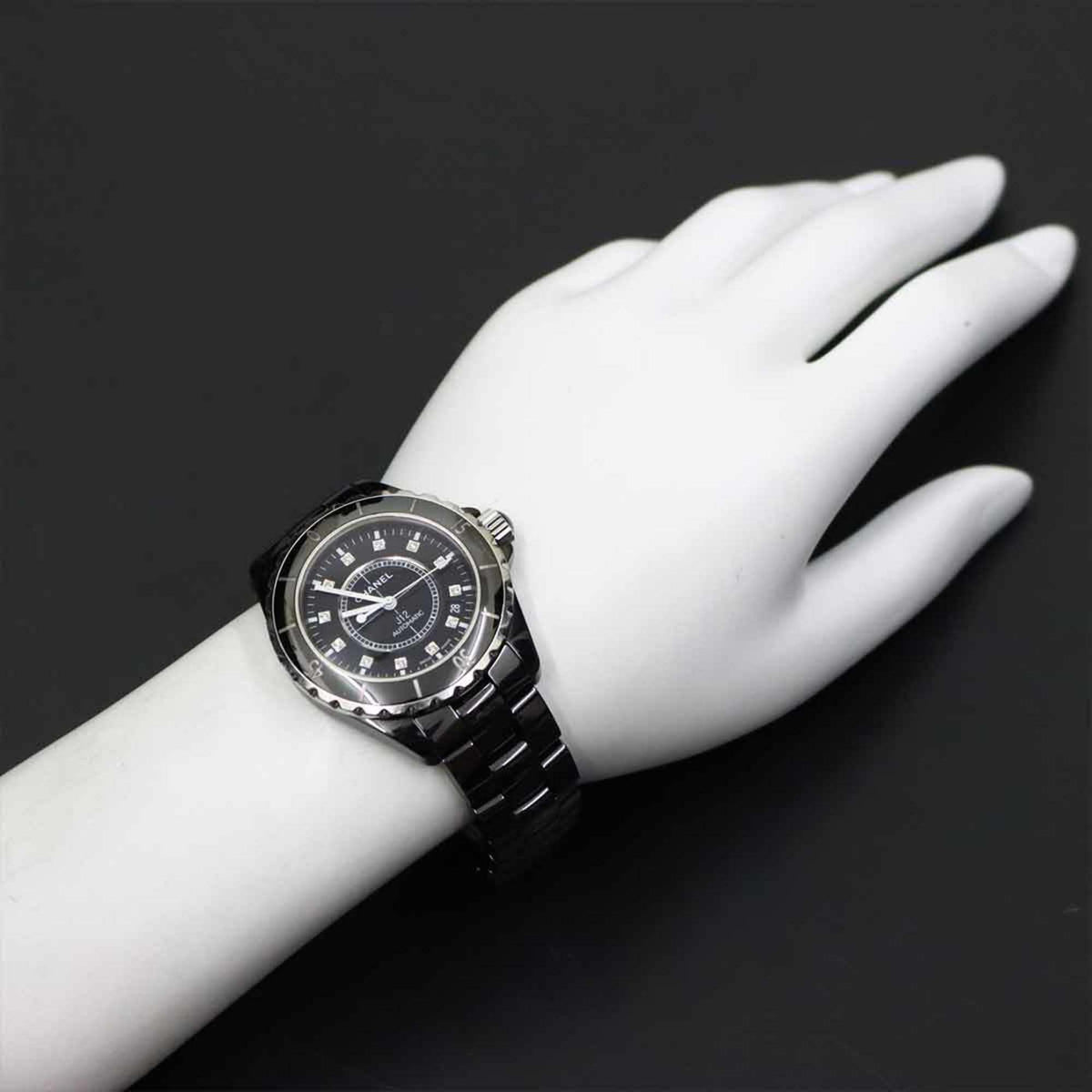 Pre-Owned Chanel J12 38mm H1626 Men's Watch with 12 Diamonds, Black Ceramic, Date Display, Automatic Movement