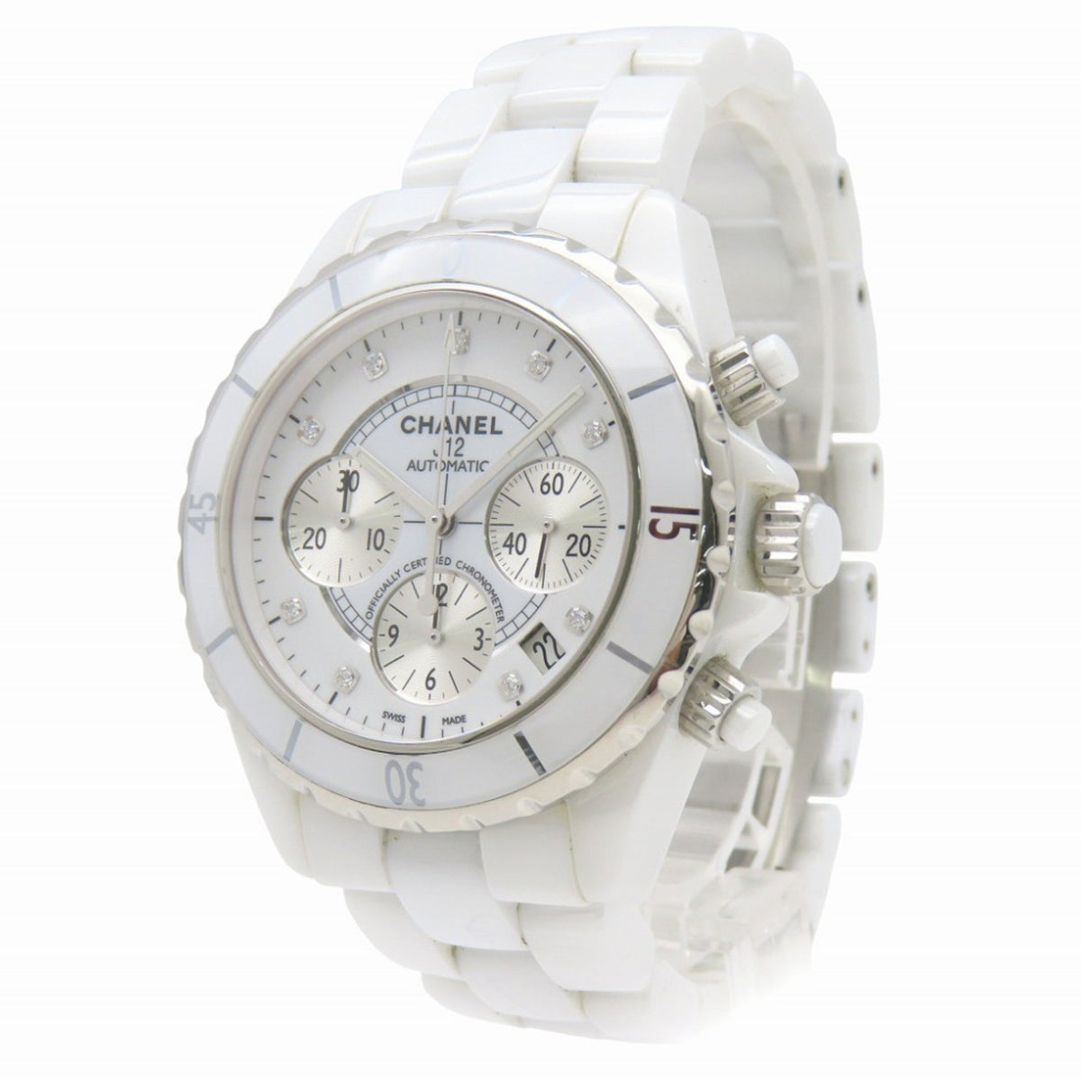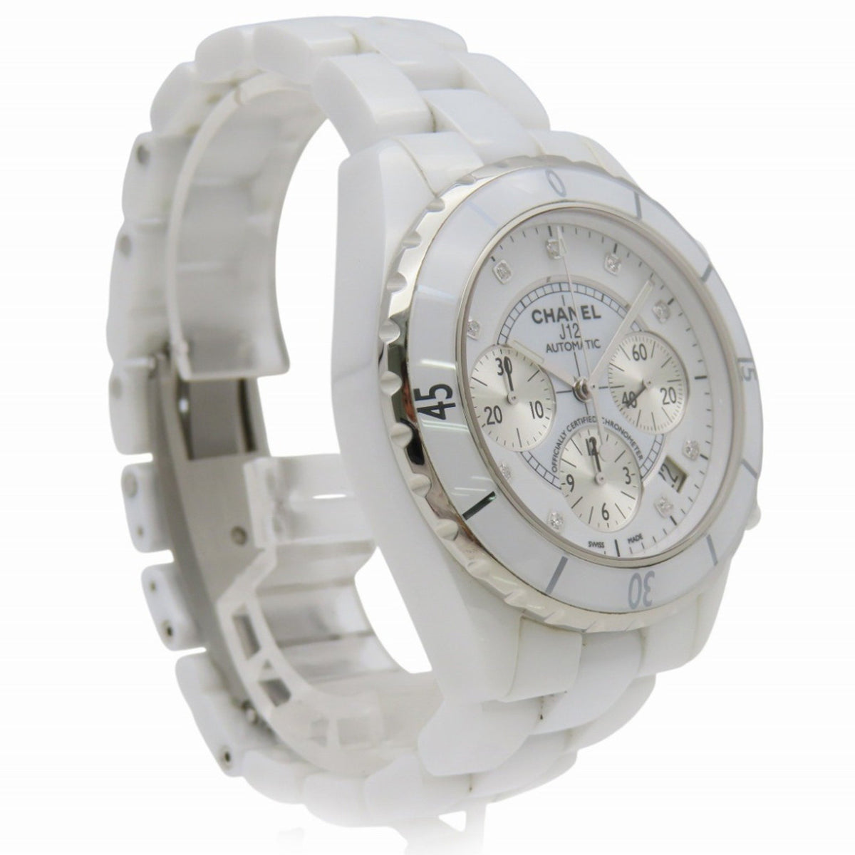 Pre-Owned Chanel J12 Chronograph 9-Piece Diamond Watch, H2009, Automatic, White Ceramic/Diamond, Dial, 0047, CHANEL, Men's