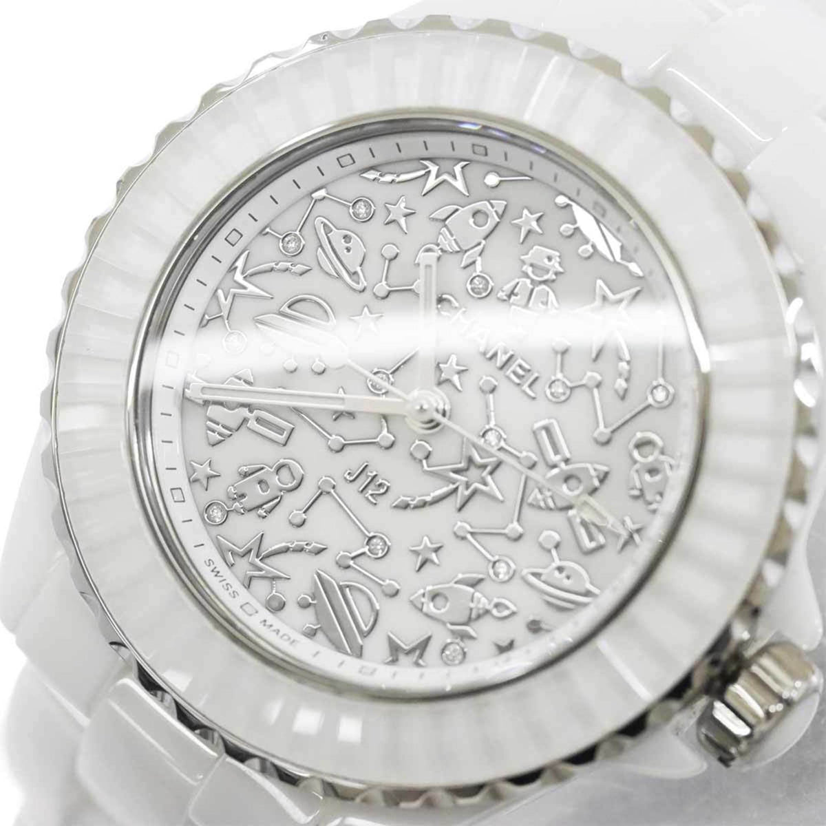 Montre femme CHANEL J12 Cosmic H7990 d'occasion en céramique blanche avec diamants et quartz