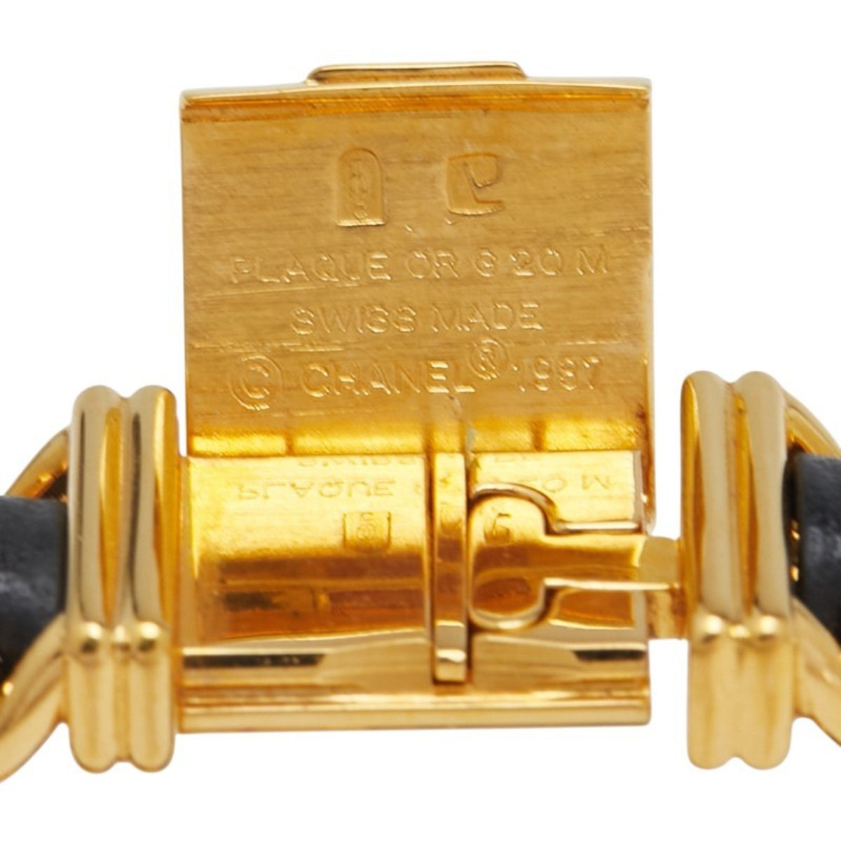 Pre-Owned CHANEL Premiere M Quartz Watch with Black Dial and Plated Leather Strap for Women