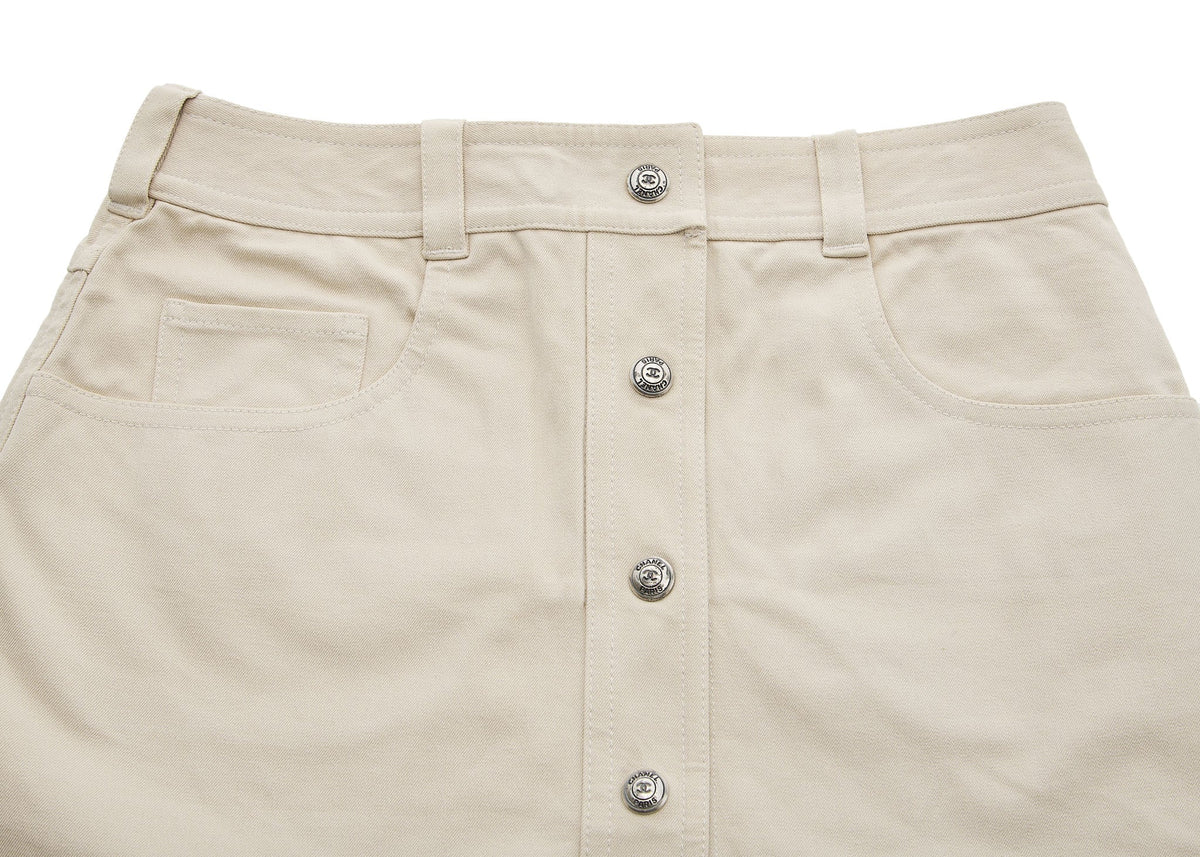 Mini-jupe d'occasion, bouton coco, mélange de coton, beige, finitions argentées, d'occasion