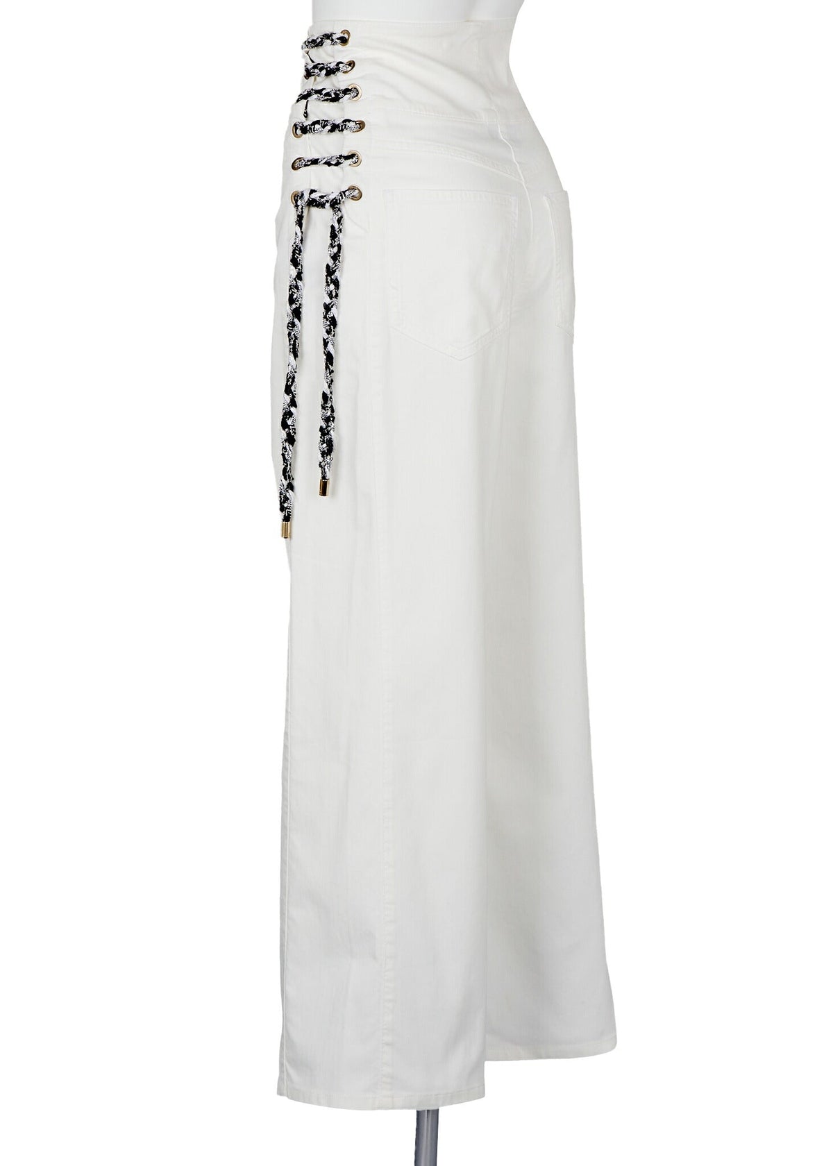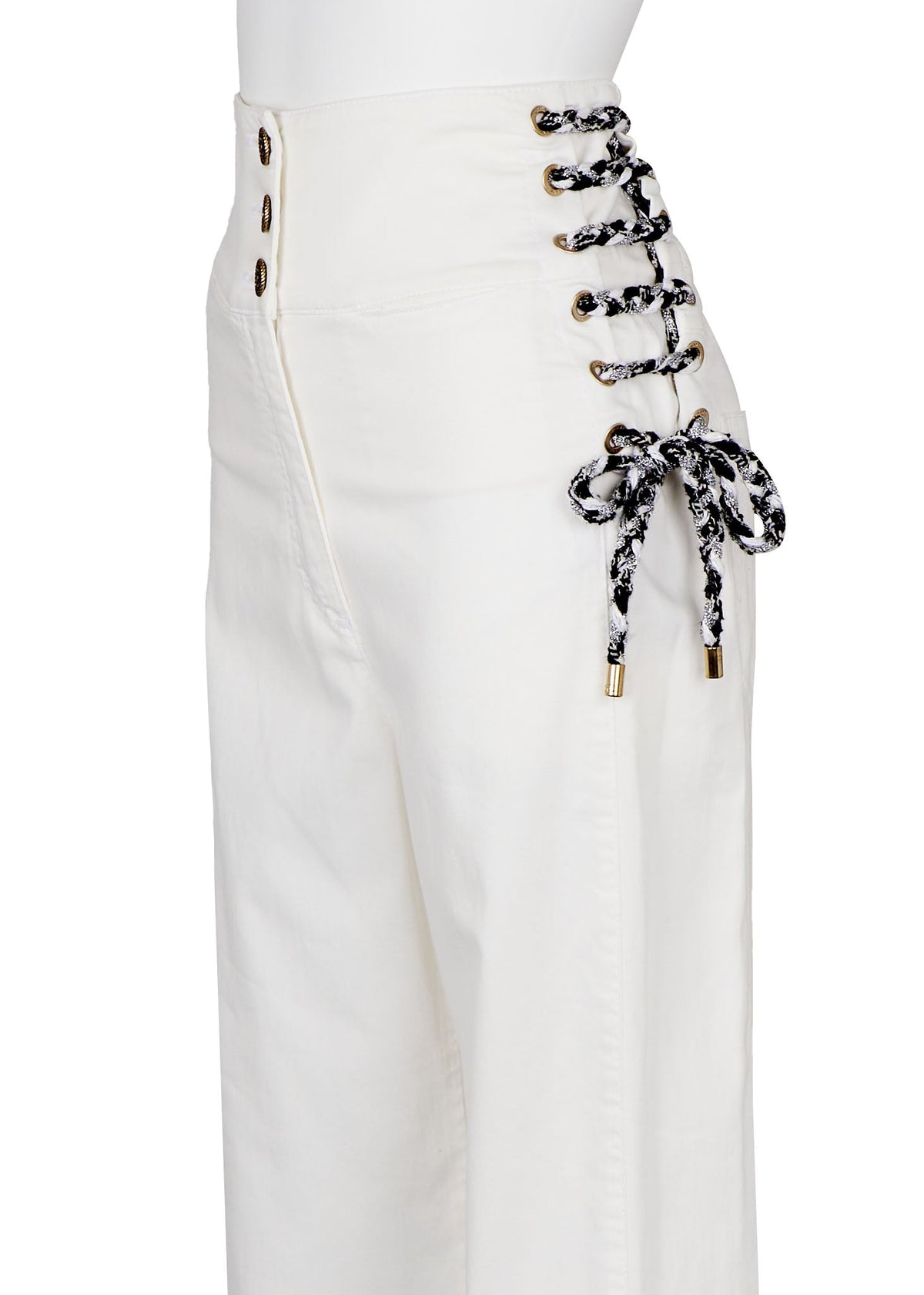 Pantalon large d'occasion, bouton coco, coton, blanc, d'occasion