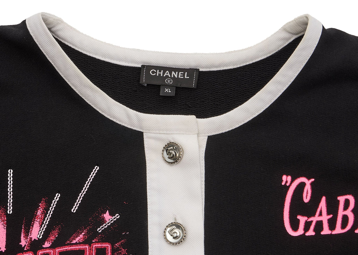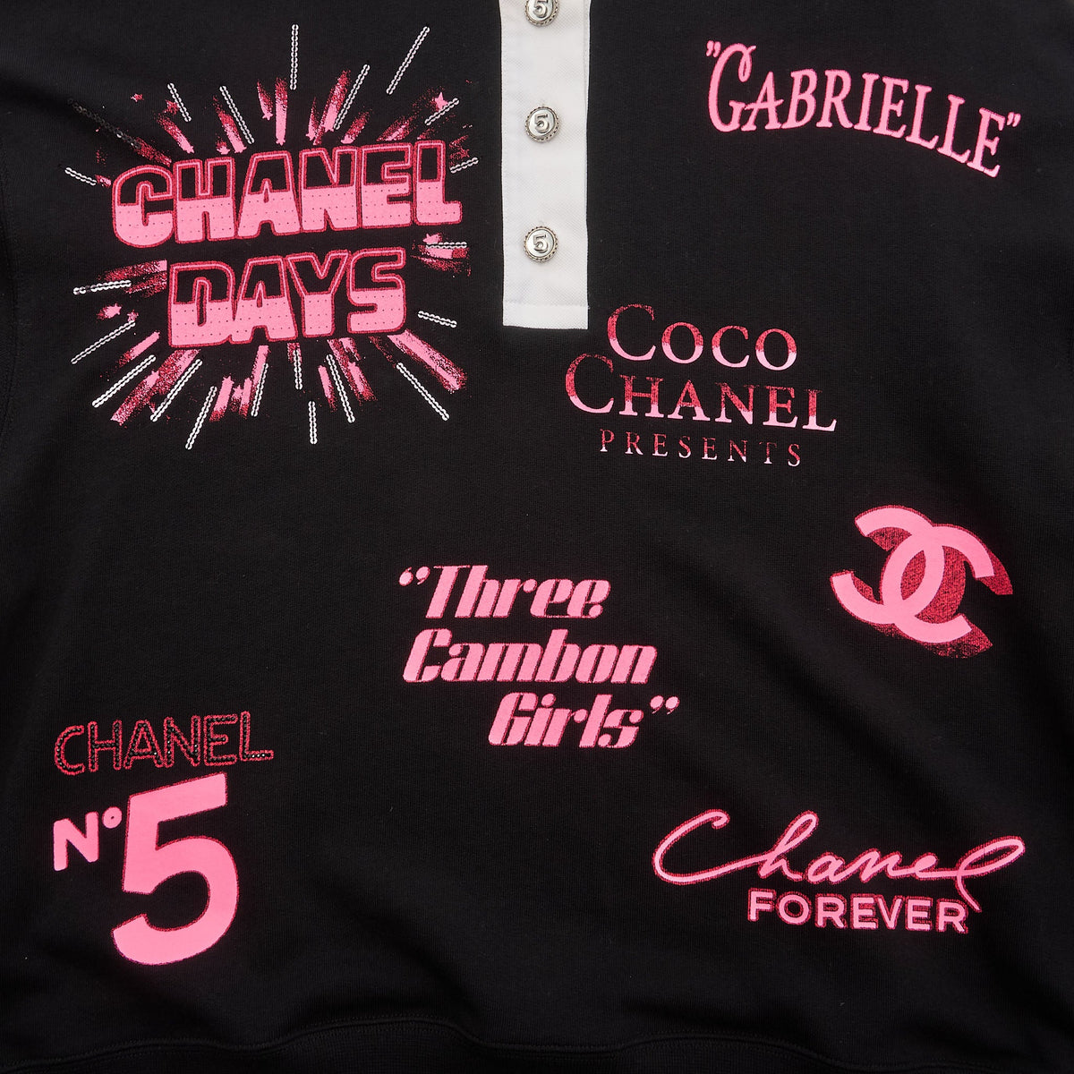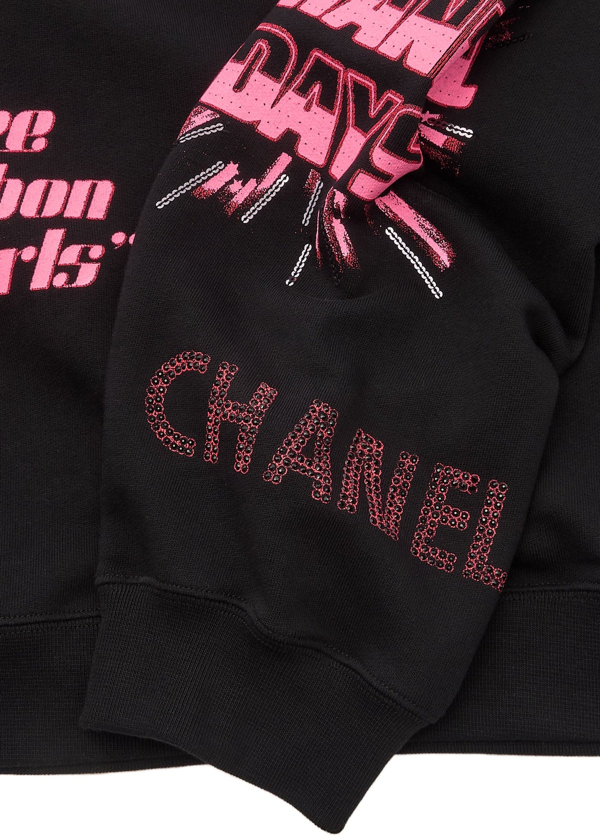 Sweat-shirt à capuche d'occasion, Coco Mark No5, manches longues, coton, noir, finitions dorées, d'occasion