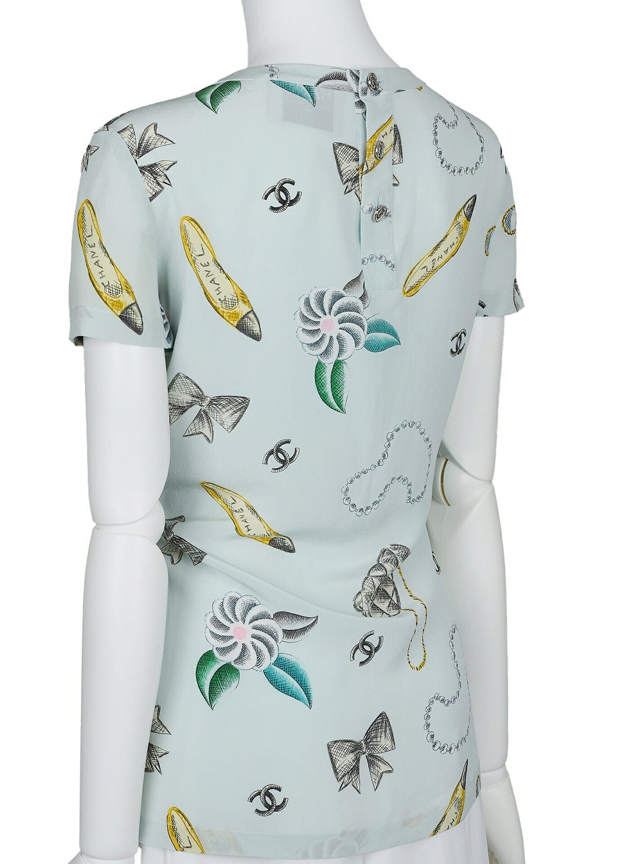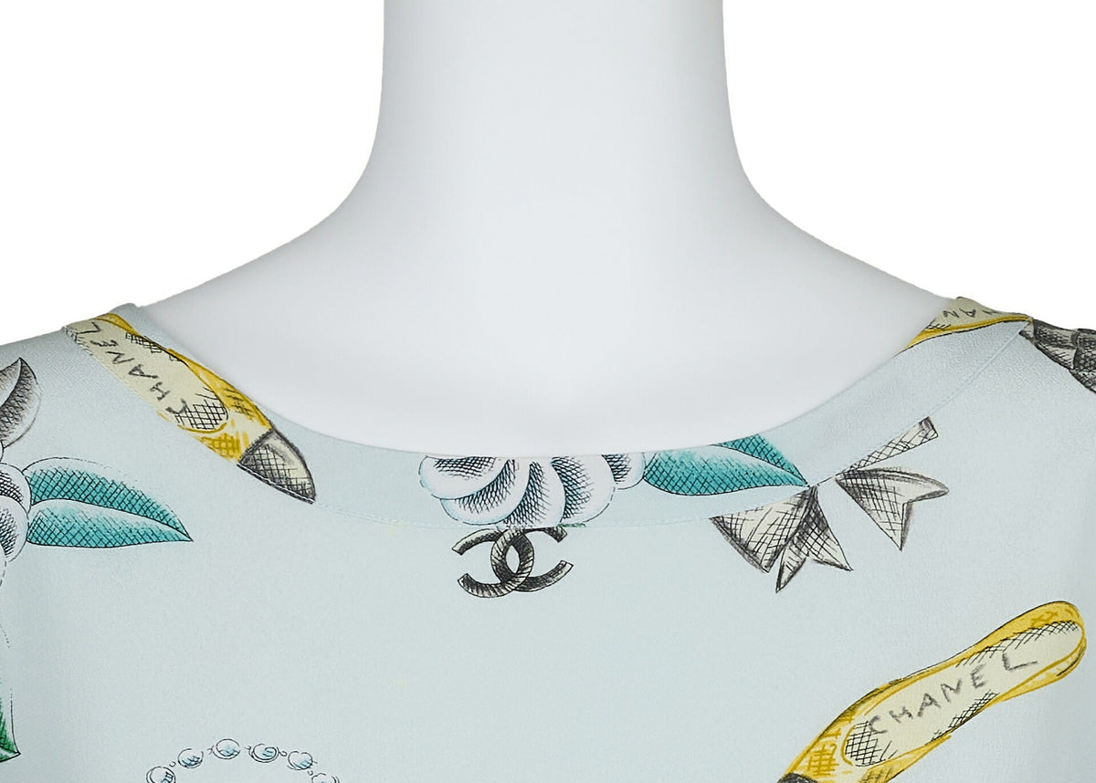 Sublimez votre garde-robe avec le superbe t-shirt chemisier à manches courtes Coco Mark Ribbon Cut Sew de CHANEL, décliné dans une superbe teinte bleu clair . Chic et sophistiqué, ce haut est une véritable déclaration de style et d'élégance, parfait pour les sorties décontractées comme pour les événements chics.