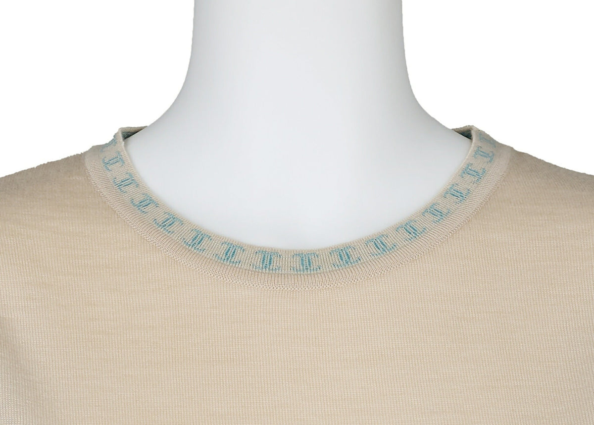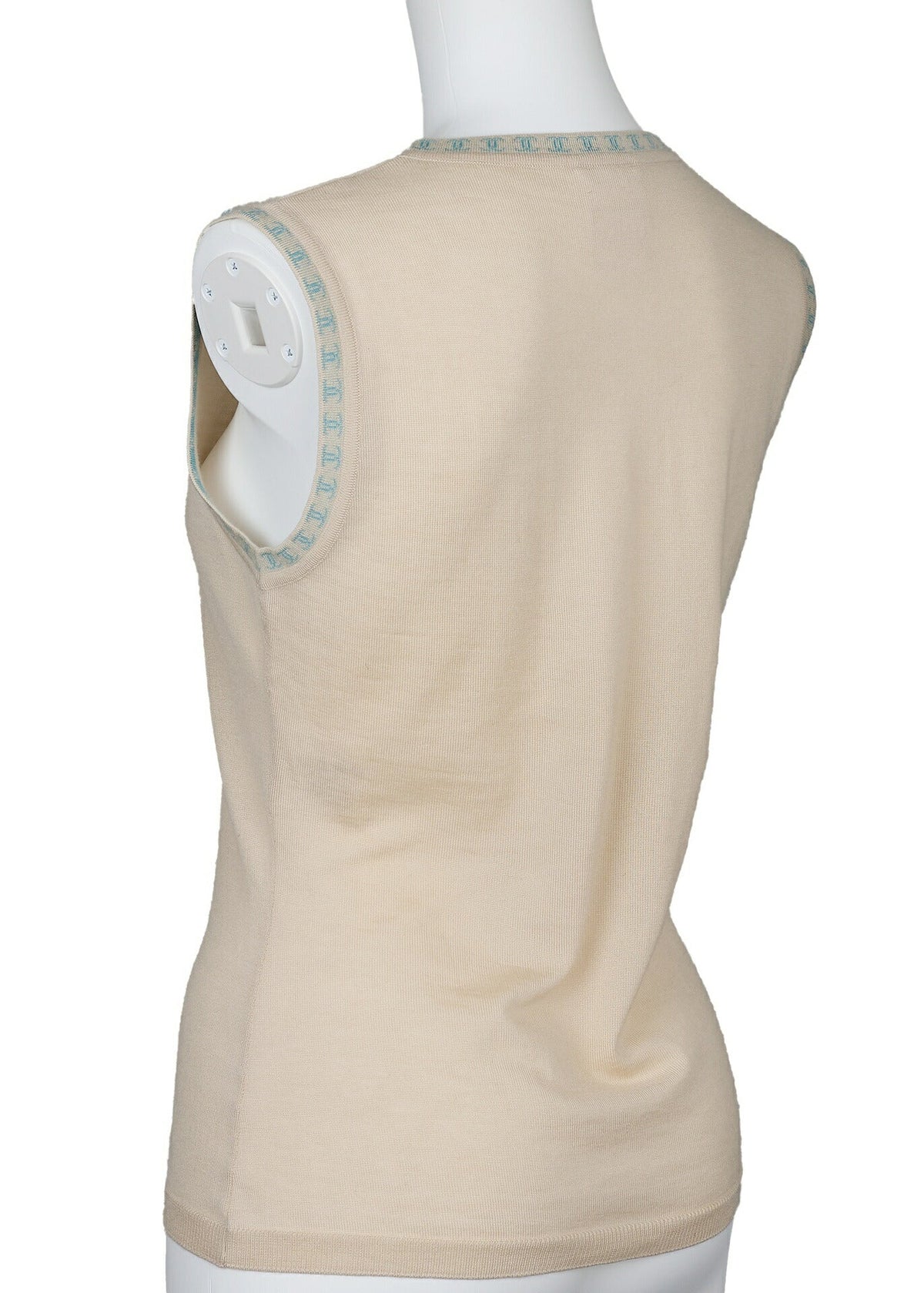 Gilet sans manches d'occasion, Coco Mark, tricoté, cachemire, beige, finitions dorées, d'occasion