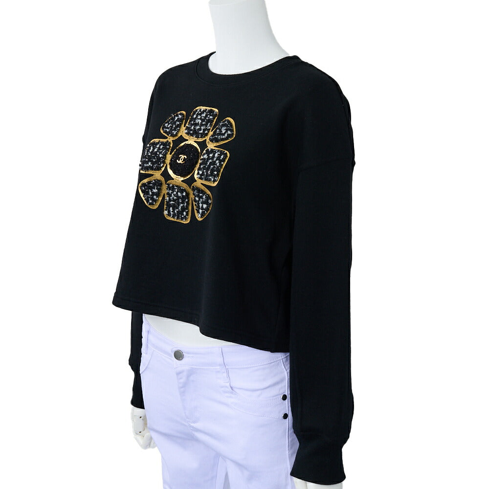 Sublimez votre garde-robe avec le superbe sweat-shirt court en tweed Coco Mark de CHANEL . Cette pièce exquise allie luxe et confort, un incontournable pour les passionnées de mode. Confectionné en 100 % coton, ce sweat-shirt court, d'une teinte noire classique, offre une polyvalence parfaite pour passer du quotidien au soir.