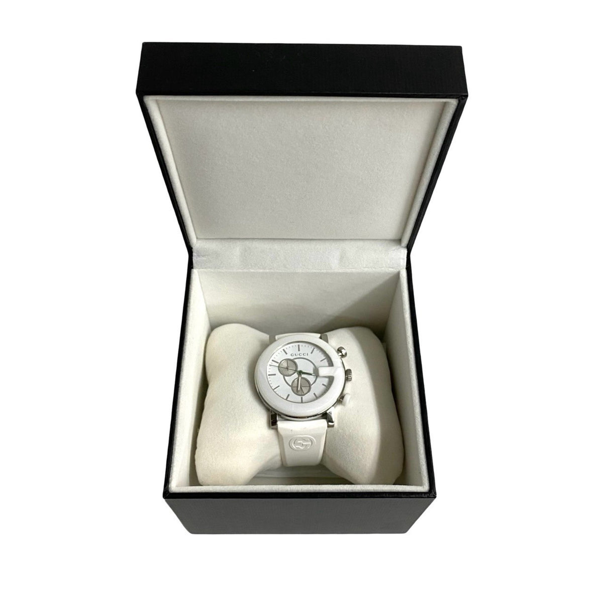Pre-Owned GUCCI G Chrono Quartz Stainless Steel Watch for Men, White and Silver, 29963