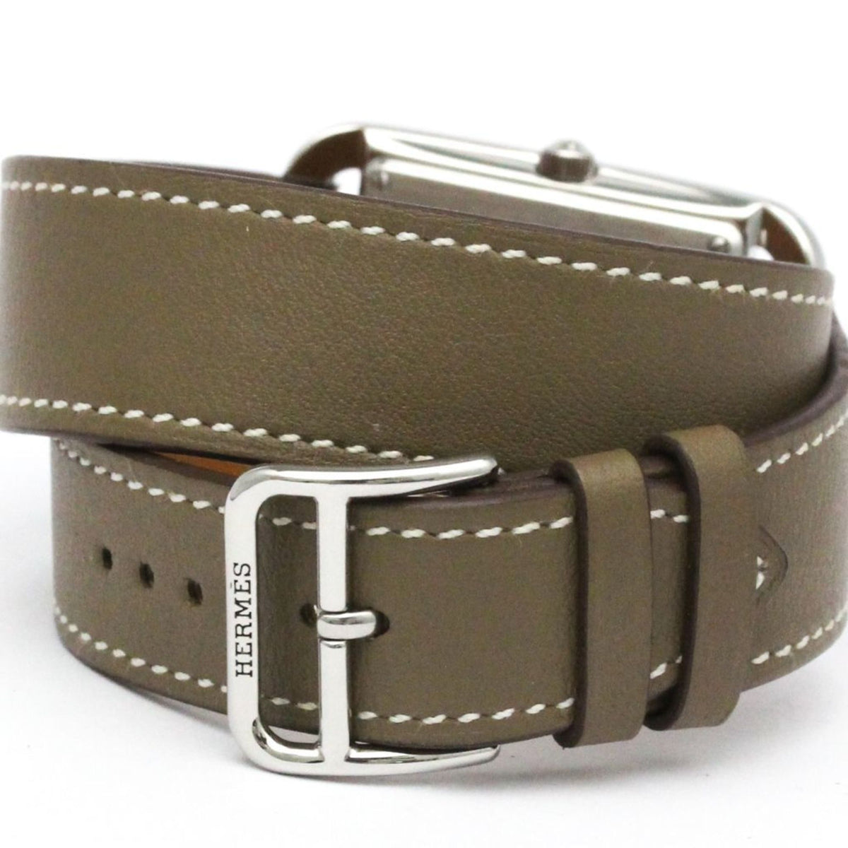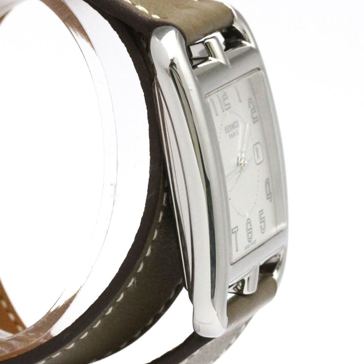 Pre-Owned HERMES Cape Cod Steel Leather Quartz Mens Watch CC2.710 Polished